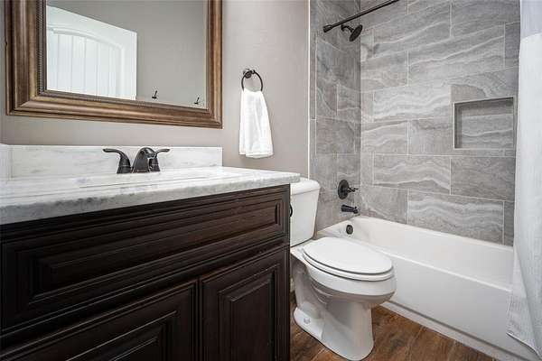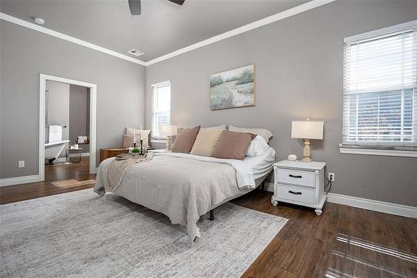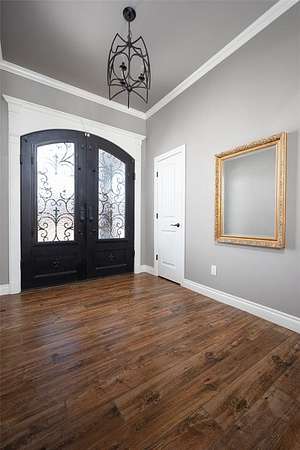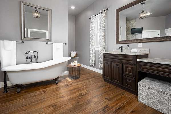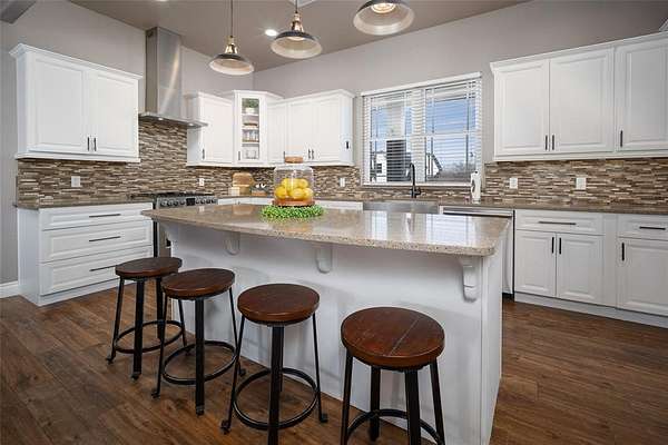 Discover the ultimate blend of grandeur and rural tranquility in this stunning 5-bedroom, 5.5-bathroom Craftsman-style estate. Situated on 3 sprawling acres, this home offers the rare "spaced-out" privacy of a rural setting with the community feel of an upscale addition and seamless highway access for an easy commute. Step through the door to breathtaking 20-foot vaulted ceilings anchored by a massive floor-to-ceiling stone fireplace. The interior is finished with elegant porcelain wood-look tile and features handicap-accessible door openings throughout much of the main level. The chef's kitchen is a showstopper, featuring a massive island, sleek quartz countertops, a gas range, a large walk-in pantry, and a commercial-sized refrigerator that stays with the home. Every bedroom in this home is a true en-suite with its own private bath. The primary suite is a sanctuary of its own, boasting a spa-like walk-in shower, a deep soaking tub, and an expansive closet with custom built-ins. For entertainment, enjoy the dedicated media room or the versatile flex space. The value extends outdoors and beyond. Guests or family will love the detached garage apartment, complete with a bedroom, full bath, and kitchenette. The property is a hobbyist's dream with a 24x30 shop, a storage shed, and a private pond. Vacation at home in your in-ground pool (currently chlorine, but salt-system ready) or the included hot tub. The massive covered front and back patios are perfect for hosting. Most importantly, this home is built for peace of mind, featuring spray-foam insulation, a 22kW whole-house generator, a built-in storm shelter tucked securely under the stairs, and two HVAC units.