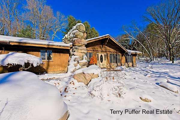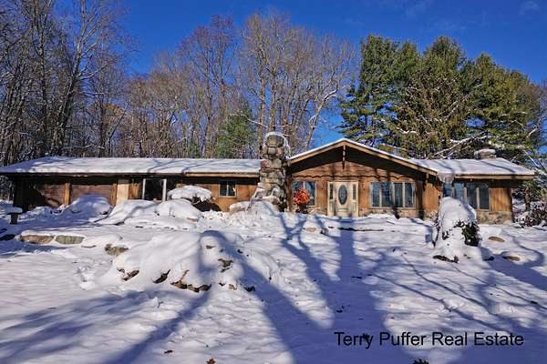 Welcome to 2291 20 Mile Road, an impressive, one-of-a-kind ranch tucked away on 2.29 wooded acres, offering exceptional privacy and a warm, rustic charm. Step inside a spacious living area highlighted by vaulted ceilings & stunning stone fireplace that sets the tone for the home's inviting character. Off the main living room is a generously sized den or office, complete with its own fireplace perfect for work, relaxation, or quiet evenings by the fire. The expansive kitchen is a true centerpiece, featuring an oversized island, striking brick accents, and an abundance of room for gathering & entertaining. The layout includes a roomy primary suite, two additional large bedrooms, & two more full bathrooms, providing plenty of space & comfort throughout the home. Nestled deep into the tree-lined property, this residence offers a peaceful retreat while still delivering a spacious interior designed for everyday living.New roof Nov 2025 & high speed fiberoptic internet. The home also has a setup for a wood burner (last used several years ago). A truly unique property ready for its next chapter! Come see all it has to offer. Buyer and buyer's agent to verify all measurements and square footage.