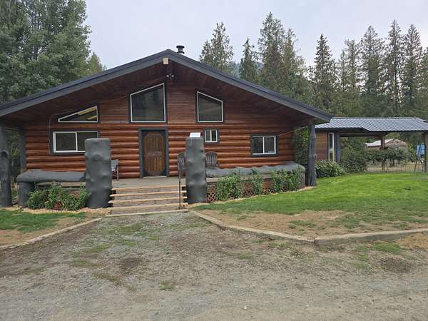 Custom log sided home conveniently located 13 miles from Colville. Stranger Creek runs through a large portion of the property. The property borders a large block of Gov't ground which is great for horseback riding, hiking, and biking enthusiast. Abundant wildlife with deer, turkeys, grouse, elk on or near the property. Much of the home is custom with artistic entry doors and entry. Newly installed Metal roof. Two rooms in basement could be used as bedrooms but will require an armoire or closet added. Four kennels set up for your best friends... Large unfinished shop waits for your final touches. Large deck off the back of the home to enjoy and access your babbling creek.