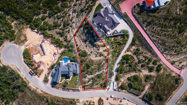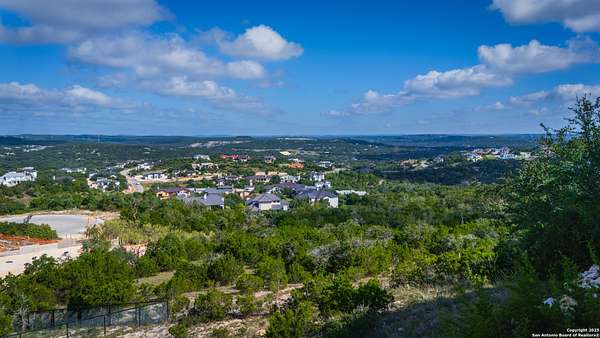 Premium homesite in The Canyons at Scenic Loop, offering unobstructed, long-range views of the Hill Country & San Antonio. Imagine building your dream home here-perched at an elevation over 1525 ft, high above the city, surrounded by majestic live oak trees, with panoramic sunrises and sunsets that stretch across the horizon. This private, gated community boasts paved roads, underground utilities, and secure access, blending convenience with peace of mind. Prime location with access to NISD schools, minutes from La Cantera, The Rim, Fiesta Texas, and the Medical Center, all with easy access to downtown San Antonio. This is more than land-it's the canvas for the home you've always envisioned. A homesite with unsurpassed views, in a community that defines prestige.