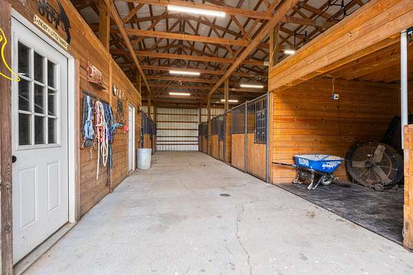 Step outside and take in the breathtaking views of open pastures, rolling hills, and a serene, man-made pond--ideal for relaxing, fishing, or simply enjoying the quiet beauty of nature. Equestrian and hobby farm enthusiasts will love the 5-stall barn with 6 additional exterior stalls, offering plenty of space for horses or livestock. The land is also equipped with three storage buildings and ample room for farming projects or recreational use.