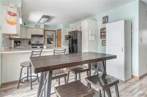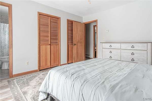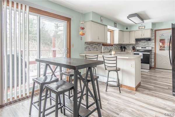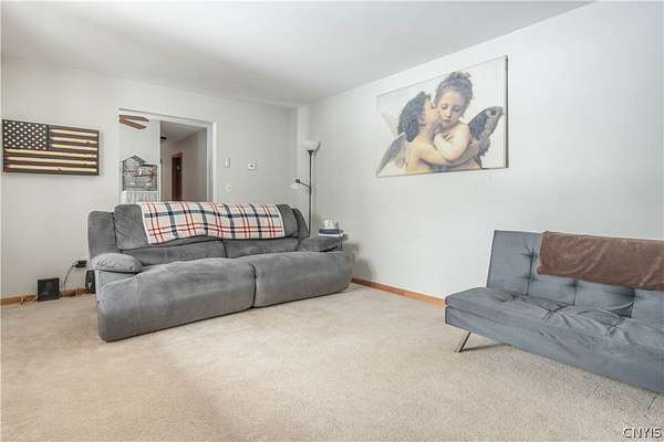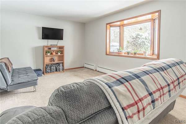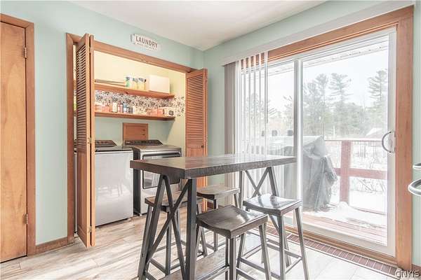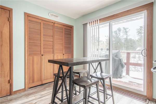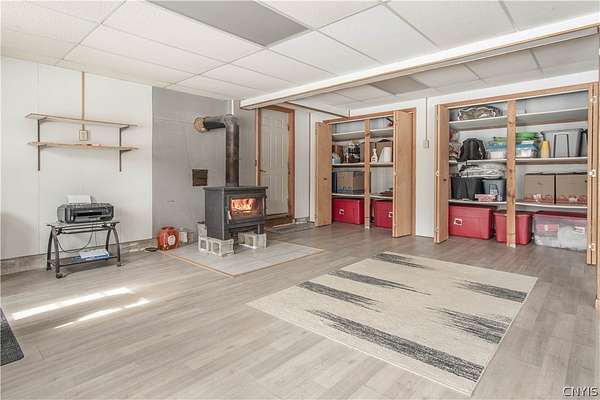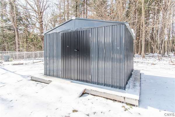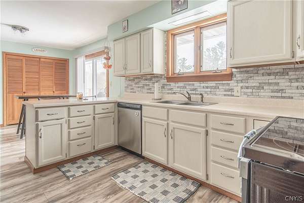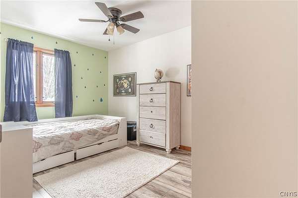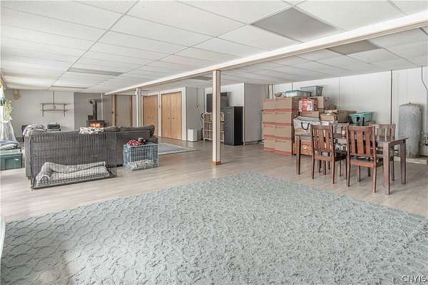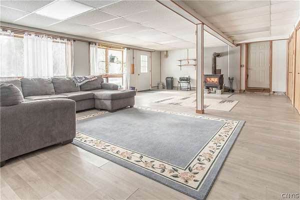 Nestled away on a quiet dead-end road, this property offers a rare combination of privacy, versatility, space, and a rural setting that is unlikely to change over time. This 3-bedroom, 2-bath home is situated on a generous lot featuring both open space and a wooded area, creating a natural sense of separation while still maintaining convenient access to Watertown and Fort Drum. Located just outside the city, the property provides an ideal balance of accessibility and privacy-only a short drive to shopping, dining, and everyday amenities, while enjoying the quiet of a more rural setting. Conveniently located just minutes from Fort Drum's main gate. The large, fully fenced backyard offers immediate usability, while an additional storage building enhances the overall functionality of this home. Inside, the main level features a clean, well-maintained layout with abundant natural light throughout. Recent updates include refinished kitchen cabinetry, newer kitchen appliances within the last three years, a dishwasher just one year old, and a brand new water heater. The washer and dryer, both less than two years old, will convey with the sale. Wall-mounted AC units provide cooling on the main level. The lower level offers a full ground-level basement with abundant natural light and direct access to the backyard. Currently utilized as an additional living space, this area provides flexibility for a second living room, recreation area, or home office..the choice is yours! The lower level also includes a wood stove, access to a natural gas heating unit, and new flooring installed since 2022. Additional features include a two-stall garage with extra storage space, storage above the garage, and deck access from both the kitchen and primary bedroom. Municipal water and sewer services are connected, with a well also located on the property for outdoor utilization. A unique opportunity to own a property that offers flexibility, functionality, and a prime location with a sense of privacy that is increasingly difficult to find.