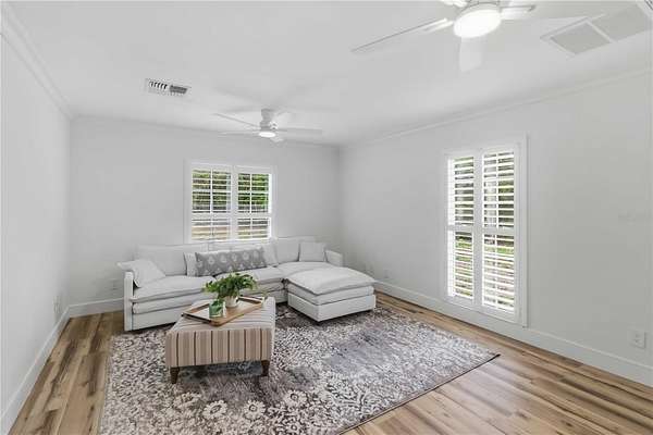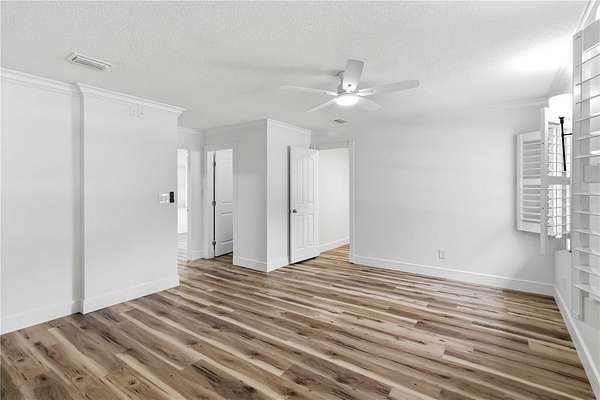 - Ceiling Fans(s), Central Vaccum, Crown Molding, Primary Bedroom Main Floor, Solid Surface Counters, Solid Wood Cabinets, Split Bedroom, Thermostat, Vaulted Ceiling(s), Walk-In Closet(s), Window Treatments