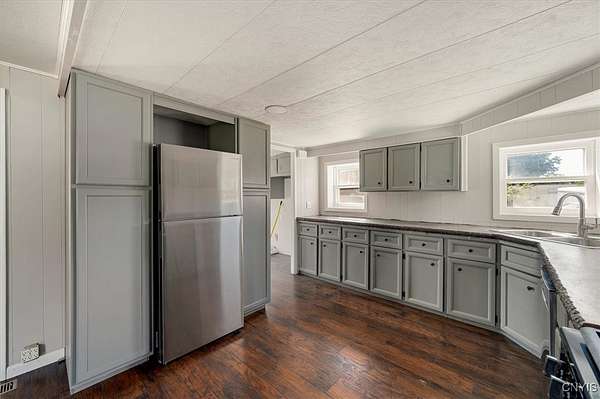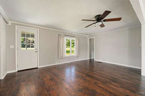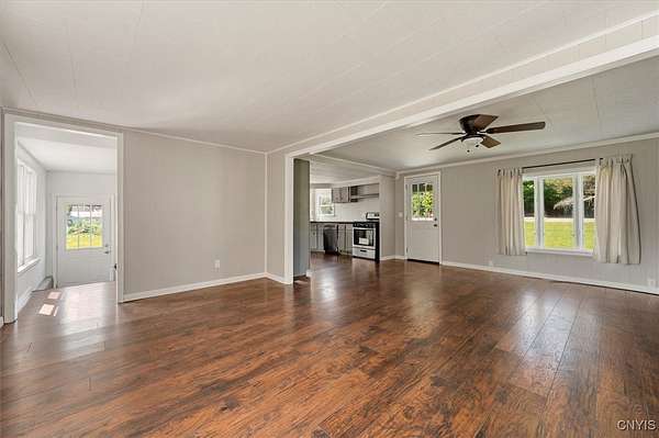 Discover Your Country Retreat! Nestled on over two sprawling acres, this charming home offers the perfect blend of country tranquility and modern comfort. Thoughtfully updated within the last two years, this property is a true gem, ready for its new owners to enjoy. Step inside to a welcoming 3-bedroom, 1-bathroom floor plan. This home has been meticulously upgraded with new plumbing, a new mini-split system, and supplemental baseboard heating, ensuring year-round comfort. The kitchen has been updated, featuring new flooring, countertops, a refrigerator, stove, and dishwasher. The bathroom has been fully renovated! These updates provide a fresh, modern feel while maintaining the home's cozy charm. The outdoor space is equally impressive. The expansive backyard, with its lush lawn and trees, provides a serene backdrop for future bonfires and gatherings. Adding to the allure is a delightful mini blueberry patch, perfect for fresh summer treats! A detached garage offers a fantastic space for a workshop or additional storage. This home is an outdoor enthusiast's dream! The Salmon River and the shores of Lake Ontario, renowned for world-class salmon and trout fishing, are just a short drive away. In the winter, jump on the nearby snowmobile trails and head to the legendary Tug Hill for an exhilarating ride. Conveniently located with easy access to Interstate 81, this peaceful sanctuary is just a short drive from all the amenities you need. Don't miss your chance to own this move-in-ready home. Schedule your private showing today! Mobile home is 65x12 (780 sq ft) with an additional 330 sq ft wooden addition = 1110 sq ft in all, information is found on property report
