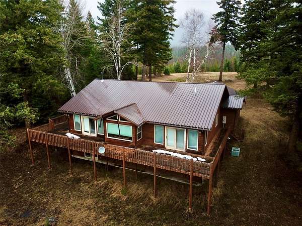 A quiet drive through towering pines up Montana Highway 83 leads you to a place where time slows and nature takes center stage. Set on 27.328 acres less than a third of a mile from the turquoise waters of Swan Lake, this private retreat is an invitation to live gently, beautifully, and intentionally in the heart of the Swan Valley. Inside, 3,016 square feet of thoughtfully designed living space unfolds through expansive picture windows that draw the forest indoors. Morning light filters through the trees, evenings bring a soft hush broken only by the whisper of wind and wildlife, and every season offers its own kind of magic. With three bedrooms and three baths, the home provides a balance of comfort and refinement-ideal for hosting guests or savoring quiet moments of retreat. A wood-burning stove anchors the living space, offering warmth and ambiance after crisp lake days or mountain adventures. Step outside onto the wraparound deck, where morning coffee, sunset conversations, and starlit evenings become daily rituals. While the deck is ready for a thoughtful refresh, its setting and views create a natural extension of the home-perfect for entertaining or simply pausing to take it all in. Whether enjoyed as a luxury vacation escape, a year-round residence, or a high-end short-term rental, this property offers the rare combination of seclusion, proximity to the lake, and income potential. Here, life unfolds at a different pace-measured in mornings on the water, evenings by the fire, and the quiet luxury of space, privacy, and place.