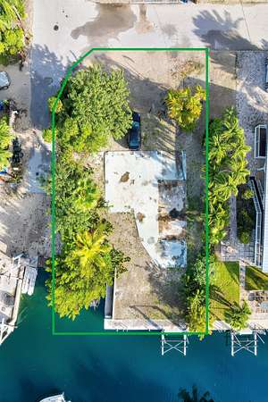 U.S. 1 to MM 23. East on Spanish Main then right on Drake Lane. The vacant lot on left edges Drake's left turn to canal.