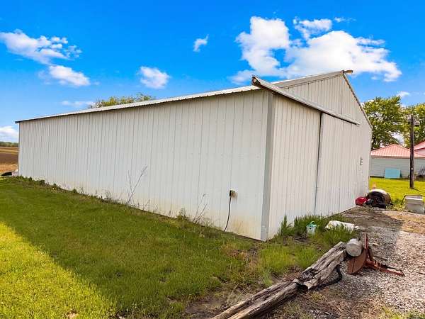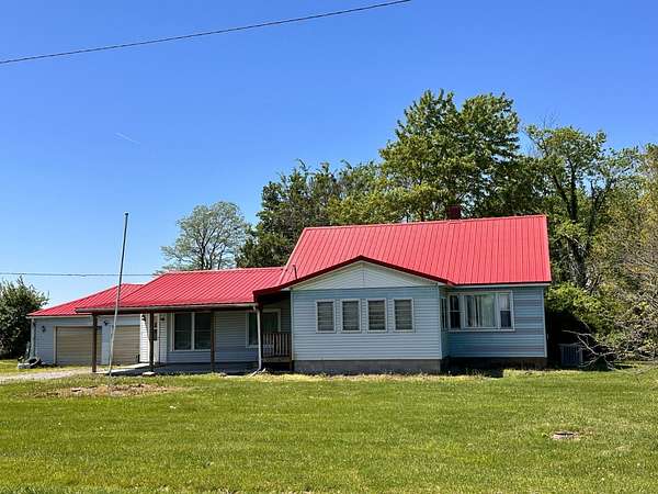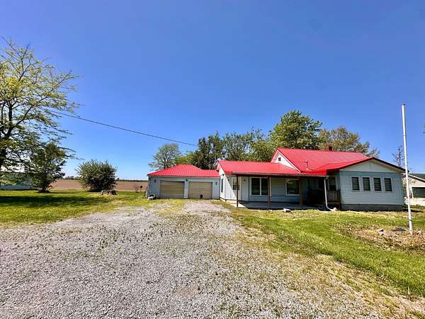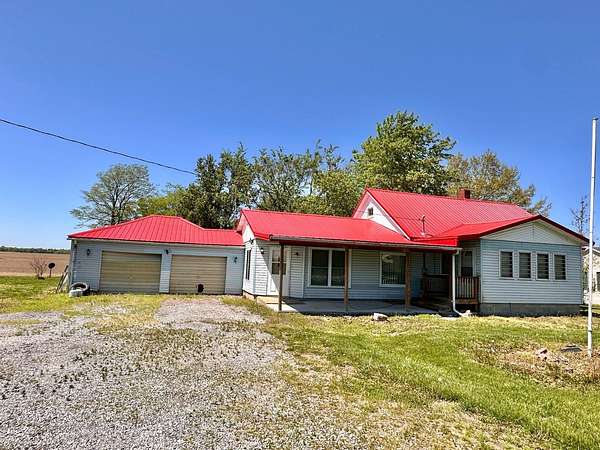Rural living on 5 acres along Highway 45 South in Reinard within the Flora School District! This 3 bedroom, 1 full bath, 2 half bath home offers just under 1,900 square feet of living space with updates including a metal roof and replacement windows. You will be greeted by a large covered porch and enter inside to a large family room filled with natural light, plush carpeting, and a propane gas fireplace. A separate living room provides additional space with laminate flooring and ample windows. The pass-through kitchen features abundant cabinetry and counter space, offering both functionality and convenience. The enclosed front porch adds valuable living space and includes additional cabinets and countertop area. A main-level bonus room provides flexibility for a dining room, office, or additional living space. The primary bedroom features a full wall of closets and a private half bath. A second main-level bedroom is generously sized with a large walk-in closet. There is a large full bath with excellent storage. An additional half bath and rear storage room complete the main level. Upstairs offers a half-story layout with a third bedroom and an additional bonus room, ideal for guests, office space, or hobby use. Outside, the property truly shines with 5 acres of usable ground, a portion currently being farmed, a 30x50x10 large machine shed, established asparagus and blackberry patches, and a chicken coop. The home also includes an unfinished basement for a safe place from storms. The owned propane tank will transfer with the sale. Western wayne water and Ameren electric If you've been searching for a rural property with acreage, outbuildings, and space to live and grow, this one checks the boxes.