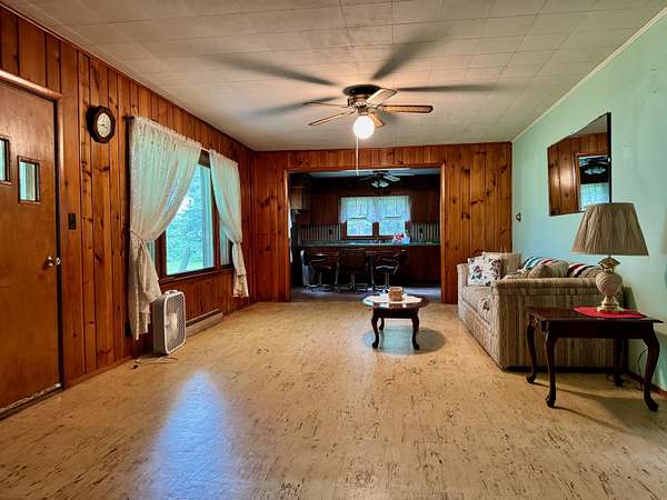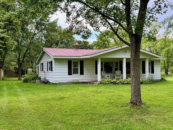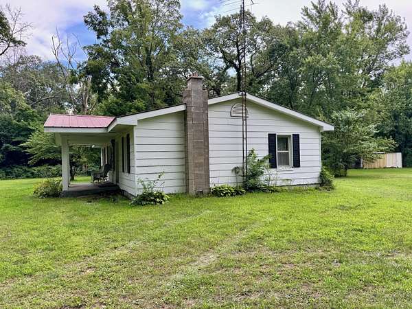 Est $1,180/moTwo bedroom, one bath single story home sitting on 12.5 +/- acres (boundary survey in process). Great possibilities in this well cared for home. Over 1,100 sq. ft. of living space with a nice layout, eat-in kitchen, covered front porch, rear enclosed porch, metal roof, and multiple outbuildings in varying conditions. Sold as-is. Aerial photo split shown is an estimate only.