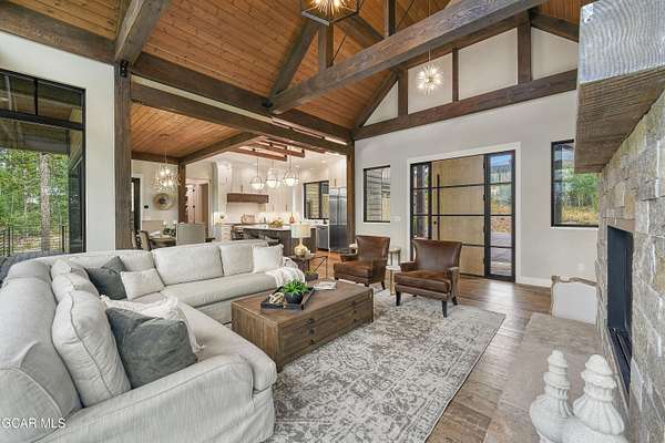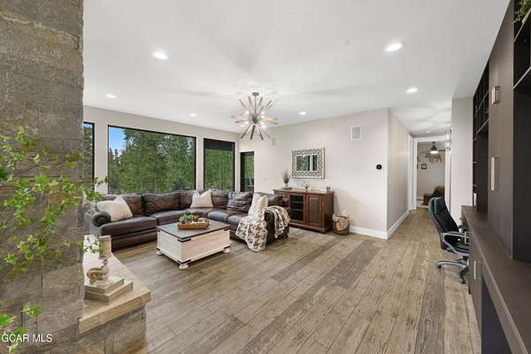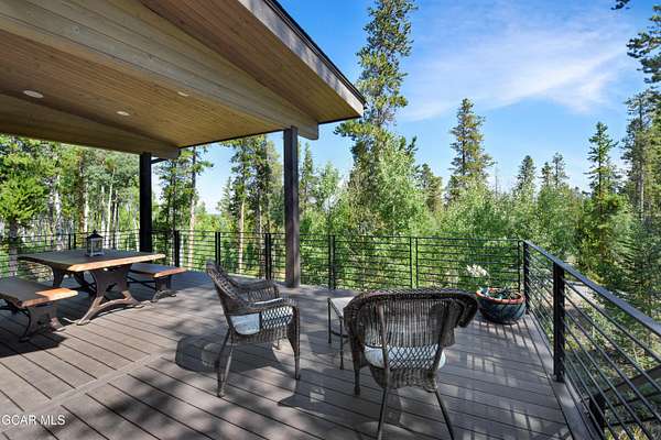 Why go through the headache of building when you can move right into this fully furnished and decorated extraordinary retreat in The Fairways at Pole Creek. This 2023 custom home was built for full time living with useability and function in mind. The home is tucked in a pristine wilderness covered in aspens and pines with peek a boo views from many angles. The serene setting was carefully planned to allow for a sense of privacy. Located in the heart of Grand County and just a short golf cart ride to the clubhouse. Or you can walk out the back door to acres of public land. The design of this home is timeless, seamlessly blending modern style and glazing with warm wood tones and beams. Once you step into the great room from the main entry you are greeted.. by wood tongue and groove vaulted ceilings with timber beams and a stone fireplace that anchors the room. The open concept architecture is ideal from a space planning perspective as the great room opens into the dining and kitchen areas. The gourmet kitchen features a 60" gas range as well as a column refrigerator and freezer. These interior spaces flow right onto the covered deck through a 4 panel full sliding wall. On warm summer days you can also enjoy the uncovered portion of the deck where there is a barbeque zone for the chef in the family. Just off the kitchen is a bar area that is situated next to a well organized pantry. The mud room off the garage features custom cabinetry for a finished and elegant feel. The laundry room features dual washers and dryers which is a must for a busy adventurous life! The expansive 4 car garage with one pull through bay and oversize doors offers generous space for all your Colorado toyswhether it's golf carts, mountain bikes, skis, ATVs, or fly-fishing gear - you're always ready for the next adventure. With a golf course just steps away, hiking and biking trails nearby, and world-class skiing within easy reach, every day offers a new way to explore the outdoors. Above the garage is a guest area with bathroom and two huge storage closets that are not part of the advertised square footage. The main level private primary retreat is situated next to an office tucked in the trees. The handcrafted closets in the bedrooms are perfectly designed and finished. The primary features Brizo fixtures and separate sink areas. Down the open wood, metal and rock feature staircase is a rec room with second fireplace and two library workstations. 3 more bedrooms and a workout room can be found on this level. The lower level also features a large hot tub ready patio with access up to the main level deck. This home truly is special and has a balanced thoughtful floorplan that is easy to live in year around. Set up your showing today!