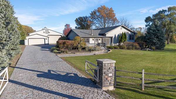 The journey begins before you even reach the door, with a truly one-of-a-kind Chicago Cobblestone driveway and parking areas. These storied pavers were salvaged from the famed Randolph Street in Chicago and the area surrounding the iconic Comiskey Park, adding a touch of historic character that sets the stage for the exceptional property that awaits. Step inside this enchanting home, a captivating 3-bedroom, 2 bath retreat perfectly situated on 3.5 acres of beautiful and serene land. This property is more than a residence; it's a sanctuary offering an unparalleled blend of comfort and natural beauty. A perfect blend of rustic charm and contemporary elegance. The heart of the home is the stunning Great Room, a space designed to inspire awe. Complete with heated floors, it boasts soaring vaulted ceilings and dramatic floor-to-ceiling windows that perfectly frame the lush, scenic grounds outside. Whether you're entertaining guests or simply enjoying a quiet morning coffee, the Great Room provides incredible, panoramic views, bathing the room in natural light and creating a seamless connection to the outdoors. The acreage provides ample space for outdoor activities, gardening, or simply soaking in the tranquility of your private oasis. This is a rare opportunity to own a piece of paradise where everyday living feels like a peaceful escape. Come experience the charm, the views, and the serenity that this exceptional property offers. Discover the remarkable 2400 sq. ft. finished barndominium, an entertainer's dream. This versatile space is perfect for hosting family events, large gatherings, or watching the big game in style. It features luxurious heated tile floors and a large dry bar complete with refrigerators, ensuring every event is effortless and comfortable. Consider converting the barn into your dream workshop-it's an ideal space for tradesmen, cabinet makers, contractors, or any enthusiast needing significant space. The sky is the limit for how you can utilize this phenomenal area. This is a rare opportunity to own a piece of paradise where everyday living feels like a peaceful escape, complete with unique amenities and endless possibilities. Come experience the charm, the views, and the serenity that this exceptional property offers. Schedule your private showing today!