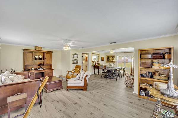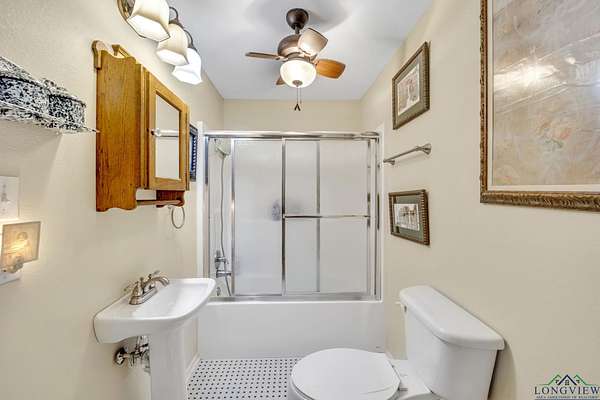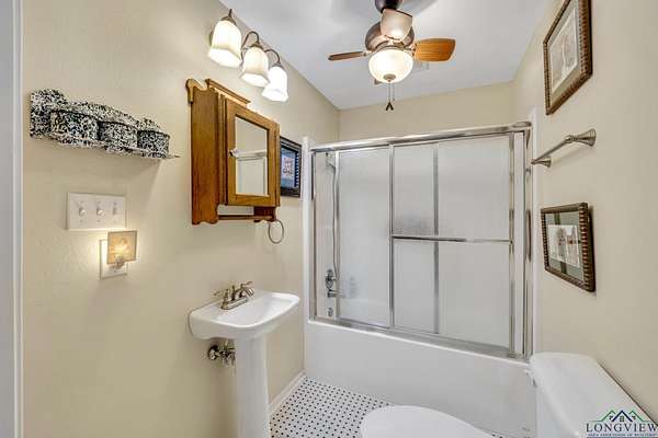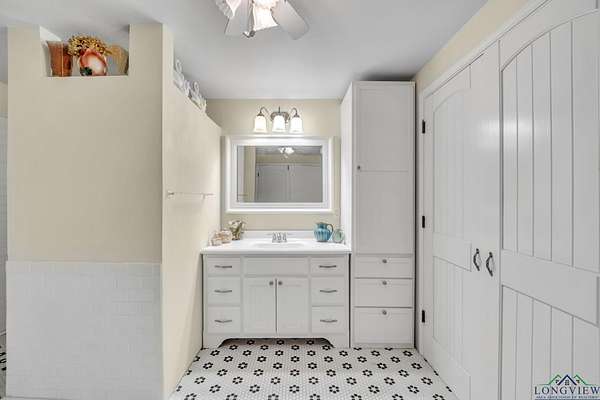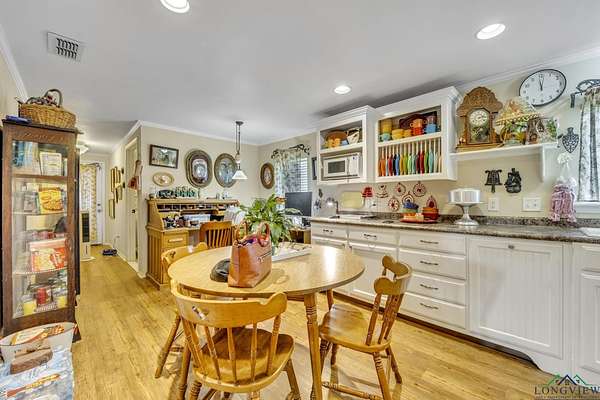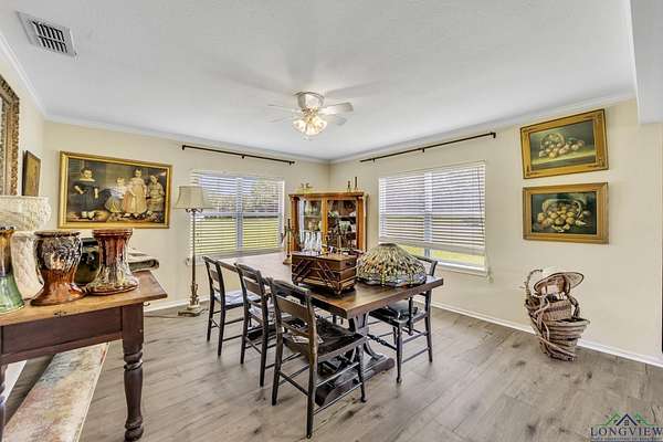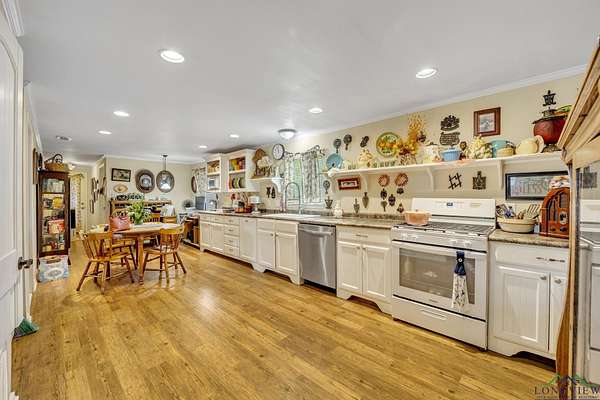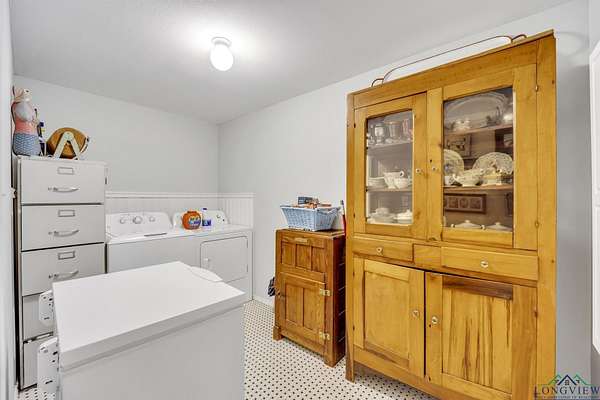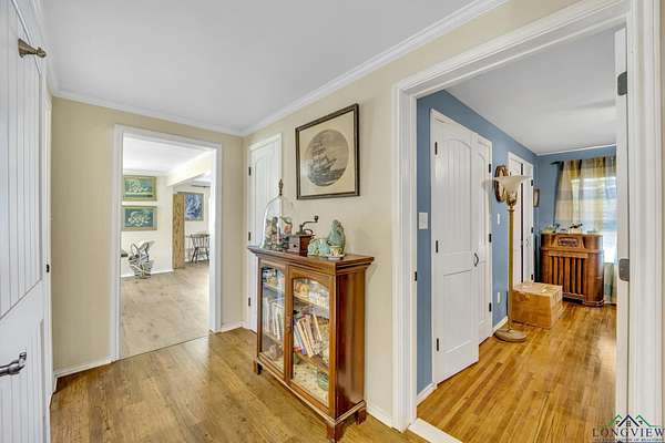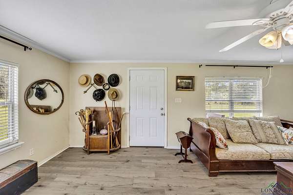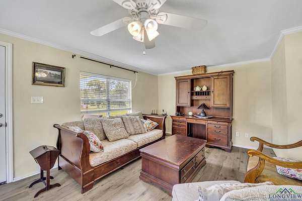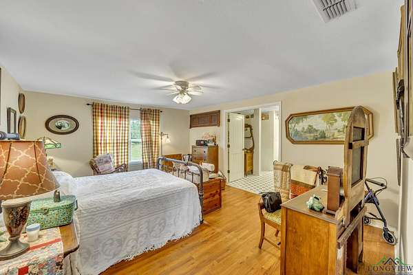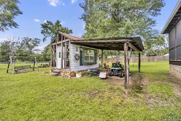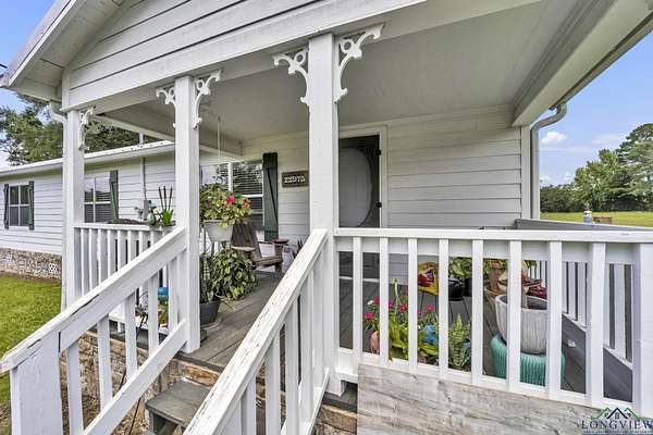 This beautiful home has 2/2/2, 1680 sf and sits on 1.56 acres in Harleton ISD. The home features a huge kitchen, large primary bedroom and a large living area. In the kitchen you will find a gas stove, updated cabinets and counter-tops and plenty of space for all your storage and cooking needs. The primary bedroom features an updated en suite with a tiled walk-in shower and a large closet. The living room and dining area features an open floor plan with lots of natural light and room for the whole family. Step outside on the huge screened back deck and enjoy the view of the property, relax for morning coffee or entertain friends.