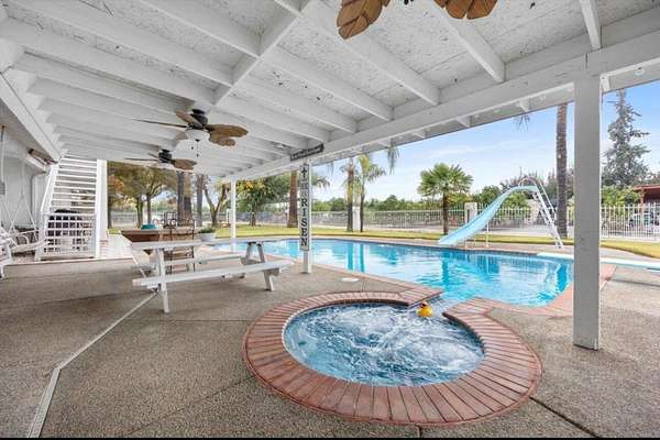 Country Living Dream in Terra Bella! Welcome home to this spacious 4 bed, 4 bath retreat on nearly 3 acres, including 2 acres of Navel Cara Cara oranges! With 3,804 sq. ft., this property is designed for comfort and gatherings. The open layout features a cozy dining space and bright kitchen, plus three bedrooms on the main floor. Upstairs, the master suite is your private oasis with a patio overlooking the pool and a luxurious retreat feel. Outdoors, relax by the sparkling pool, host unforgettable get-togethers, and take advantage of the detached shop, carport/garage, horse corral, and thriving orchard. Don't miss this opportunity-schedule your private tour today!