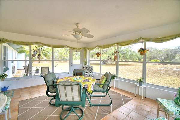 Inside, tile flooring runs throughout for easy maintenance and everyday comfort. The main living area features soaring ceilings that create an open, airy feeling! Upon entry, you are immediately drawn to the bright, fully windowed Florida room, an ideal place to enjoy your morning coffee or wine while taking in peaceful views of of Florida's natural landscape!