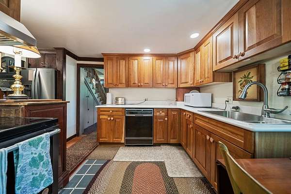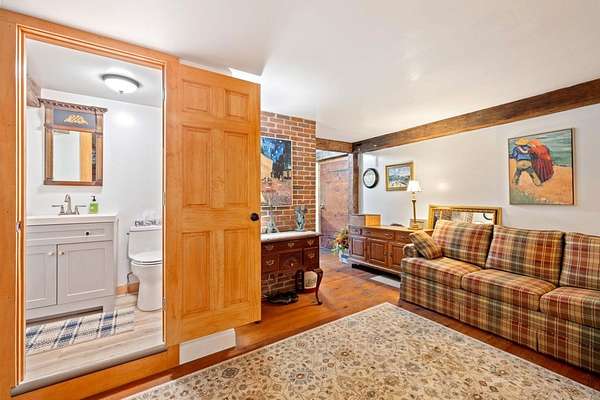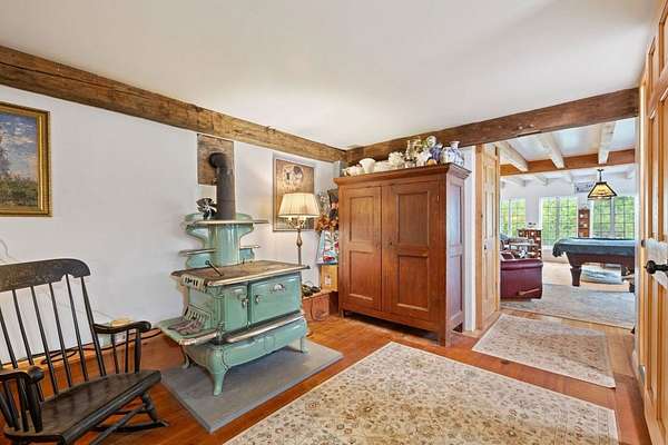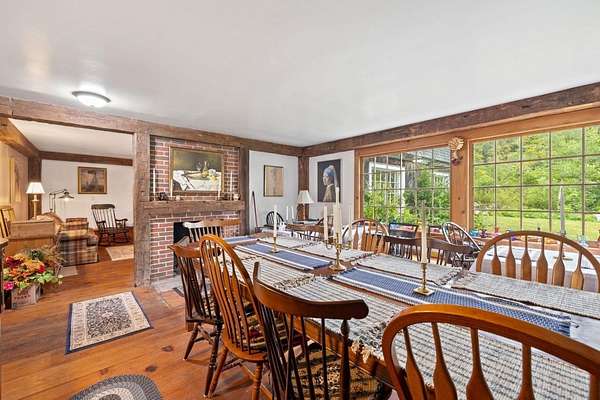 A Distinctive Country Retreat on 6.8 private acres in the heart of the historic village of Saxtons River. This idyllic country estate offers year-round views, exquisite perennial gardens, & two beautifully integrated wings?the timeless Cape & the charming Carriage House. Inside of the Cape wing is a sunlit eat-in kitchen, KraftMaid cherry cabinetry & Silestone quartz countertops ?all overlooking the vibrant gardens. The living room features wide pine floors, hand-raised paneling, & a brick fireplace. The adjacent room?perfect as a dining area or study with soaring Palladian windows. Every corner of the home speaks to craftsmanship and heritage: hand-forged iron hardware, custom cherry woodwork, and interior shutters are just a few of the thoughtful details. Upstairs in the Cape wing, you'll find two bedrooms & full bath. The Carriage House, connected by a hidden passageway behind a custom bookshelf?or accessible by its own private entrance. Two additional bedrooms overlooking the gardens, 1.5 baths, & Great Room with beamed ceilings & hickory floors. A formal dining room complete with a traditional Rumford fireplace. Outdoors, a post-and-beam breezeway leads to the garage & courtyard. Modern upgrades include a newer roof, mini-split systems for year-round comfort, underground utilities, updated plumbing, & electrical systems. Motivated Seller.