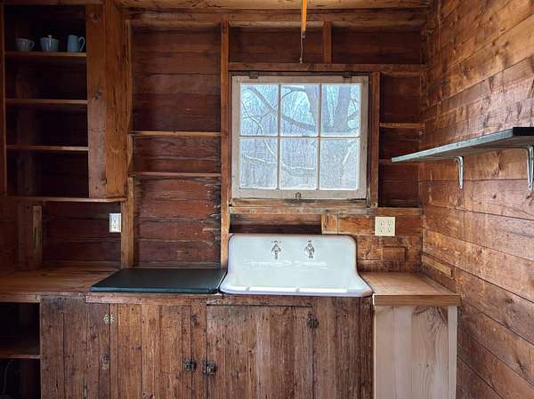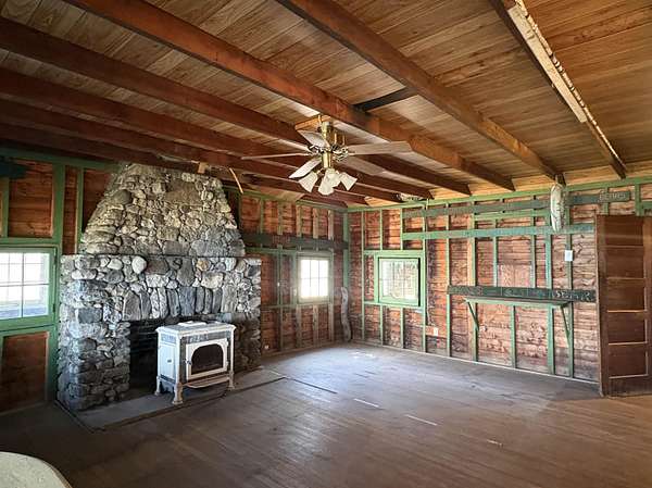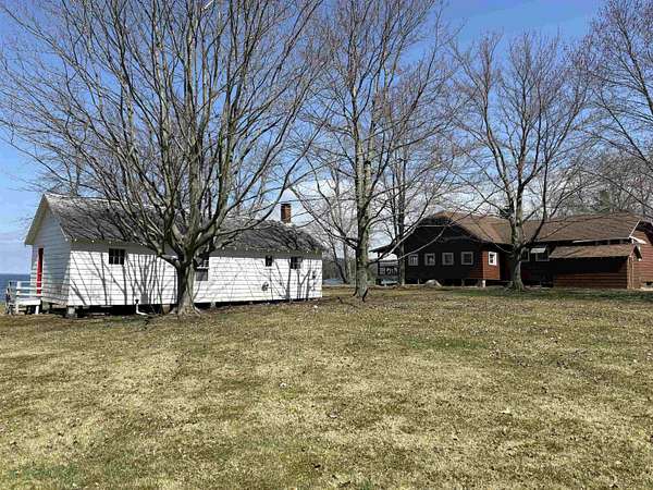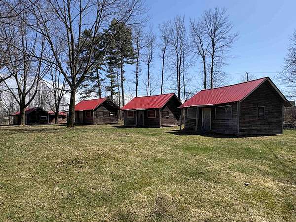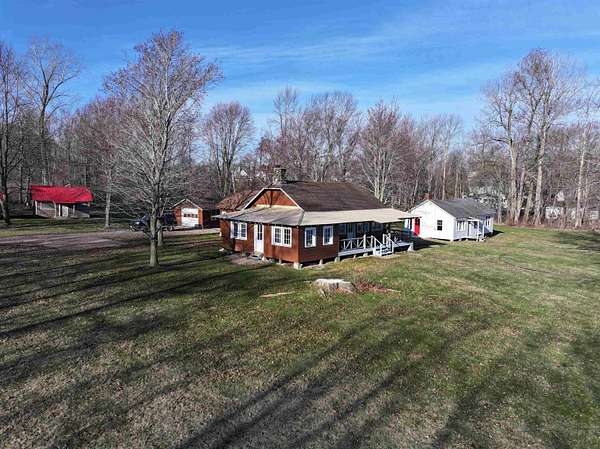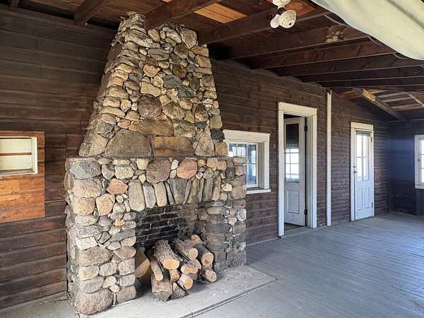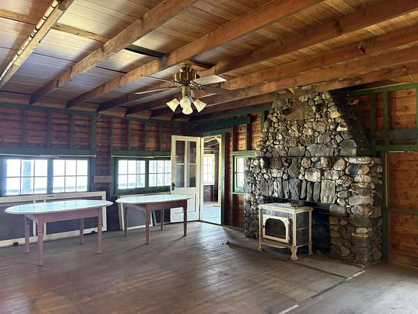 Step back in time with these two nostalgic historic lakefront camps, once a cherished scout camp, now ready to become your private retreat. Nestled on 5.4 picturesque acres, this unique property boasts an impressive 482 feet of easy-access shoreline, offering tranquil waterfront living. The main lodge features 1 bedroom and 1,511 sq ft of vintage charm, highlighted by a spacious great room with a cozy stone hearth and woodstove insert. An enclosed porch also showcases a stone hearth, perfect for relaxing evenings. Both the main lodge and the adjacent 800 sq ft, 2-bedroom camp include primitive kitchens adorned with charming antique appliances that enhance the historic ambiance. Additional convenience is provided by four other structures and a detached garage, all resting on a rare, level, and private yard that invites outdoor enjoyment and recreation. A state-approved 3-bedroom mound septic system completes this distinctive property, offering modern functionality amidst timeless character. Don’t miss the opportunity to own a slice of history with unparalleled lakefront access and rustic elegance.