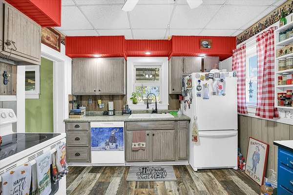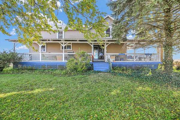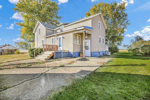 Welcome home to this peaceful country retreat set on just over two acres. The inviting porch, spanning two sides of the home, offers the perfect spot to relax and enjoy quiet mornings or stunning sunsets. This charming three-bedroom, one-bath farmhouse features gorgeous hardwood floors and a cozy, welcoming atmosphere throughout. The exterior boasts newer siding and replacement windows for both efficiency and style. An oversized 2.5 car garage provides ample space for a work area, and the rehabbed summer kitchen in back offers additional storage or creative space. Other highlights include a generator, well pump, and septic system (approximately 8 years old). HVAC (2018) Property is being offered as-is-a wonderful opportunity to enjoy timeless country living in a truly special setting; complete with a peach tree, grape arbor, and lilacs!