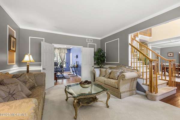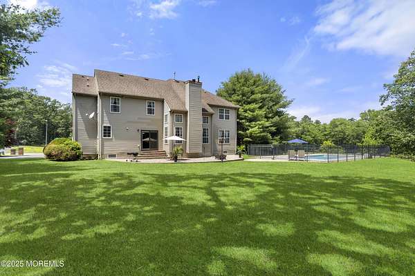 Welcome to 23 Emma Lane - a stunning 4 bedroom, 3.5 bathroom Colonial nestled on 3 private acres at the end of a quiet cul-de-sac in The Vinyards. Boasting over 4,500 sq ft of living space, this home impresses with a grand two-story foyer, elegant crown molding, and sun-drenched living and dining rooms. The spacious eat-in kitchen features hardwood floors, a center island, stone countertops, and sliding doors leading to the backyard oasis. The family room offers 9 ft ceilings, a cozy wood-burning fireplace, and floor-to-ceiling windows that flood the space with natural light. A main-level bonus room with built-ins and a closet makes the perfect home office. PLEASE DO NOT WALK THE PROPERTY The luxurious primary suite showcases a tray ceiling, two walk-in closets, and an ensuite with a large soaking tub and separate shower. The fully finished basement offers a media room, exercise room, living space, and full bath. Outside, enjoy the beautifully landscaped backyard with a stone patio and a sparkling inground poolideal for entertaining and relaxation.