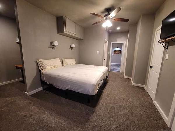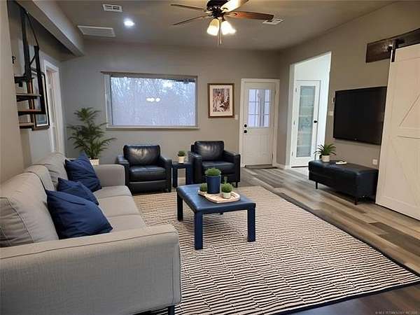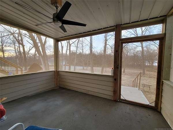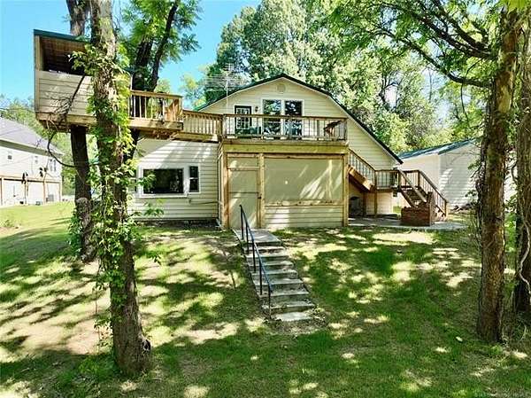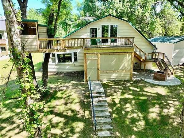 WATERFRONT COTTAGE JUST OFF THE HIGHWAY AT LAKE EUFAULA, OK! Don't let the exterior fool you-this charming lakefront cottage offers incredible space and flexibility, comfortably sleeping up to 12 guests! Designed with gatherings in mind, the home features two bedrooms on the main level, a spacious upstairs loft, and three full bathrooms to easily accommodate family and friends. Inside, you'll find two separate living and entertainment areas-perfect for hosting. Use one as a cozy conversation space and the other as a game or media room. There's truly room for everyone to relax and unwind. The true highlight of this property is the lakeside screened-in porch, where you'll likely spend most of your time enjoying peaceful water views. Start your mornings with coffee overlooking the lake and wind down in the evenings around the outdoor fire pit. A gentle slope leads to the water, with ample beach area for swimming, sunbathing, and lakeside fun. Need storage? The detached garage provides plenty of space for your lake toys and equipment. Conveniently located just off the highway for easy access-this waterfront retreat is ready for you to enjoy. Call today to schedule your private showing!