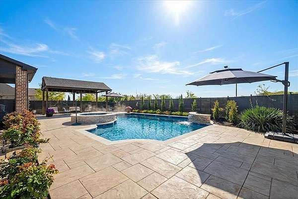 Resort-style retreat on 1.5 acres with $300K+ in upgrades, a stunning pool, and luxury indoor-outdoor living! This exceptional property offers over 4,000 sq ft of elevated living, featuring thoughtfully designed spaces. Featuring 4 spacious bedrooms, 4 full baths, a first-floor primary suite, executive office, main-floor guest suite, media room, and a versatile game room, this home is designed for both everyday living and effortless entertaining. The outdoor retreat is truly exceptional, featuring a recent pool and spa remodel, upgraded Pentair pool equipment, including a new WhisperFlo pool pump, a heated pool for extended enjoyment, and a BeatBot pool cleaner. The grounds have been enhanced with newly added trees, each with a drip irrigation system, creating a beautifully landscaped setting with added natural buffering and a sense of seclusion. A detached covered patio offers the perfect space for year-round entertaining, complete with a ceiling fan, lighting, and a dedicated gas line for grilling, while the custom screened-in porch provides an additional space to relax and unwind. Major system upgrades; two new HVAC units, a Class 4 impact-resistant roof, and a full-home 26kW Generac generator. Additional features include a theater room projector and screen, game room sound system, hand-scraped hardwood floors, custom cabinetry, fresh professional paint, solid-core doors, upgraded lighting and hardware, and a spacious, fully decked attic. The primary suite has also been enhanced with custom window inserts, creating a quiet, serene retreat with added comfort and energy efficiency. Ideally located near highly rated Rockwall schools with convenient access to highways, dining, shopping, and entertainment, this home offers the perfect blend of luxury, functionality, and everyday comfort, creating a space you may never want to leave!