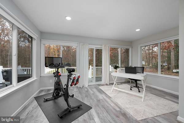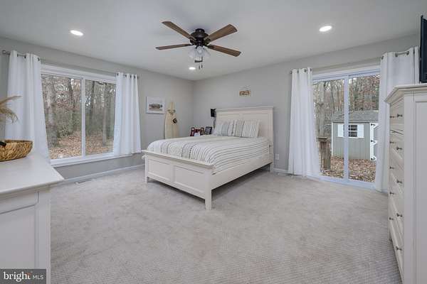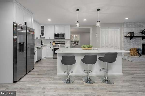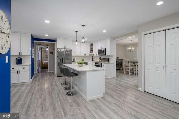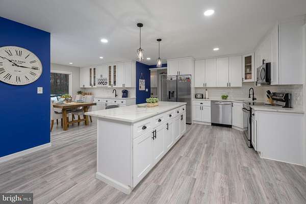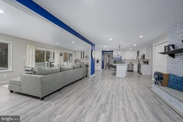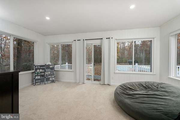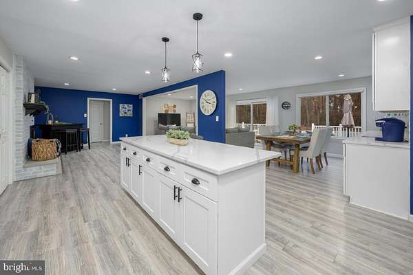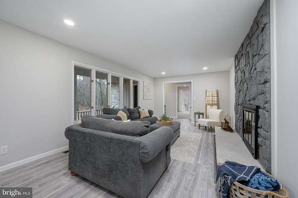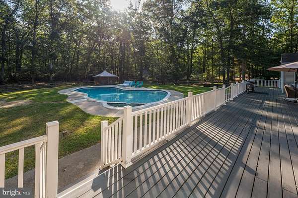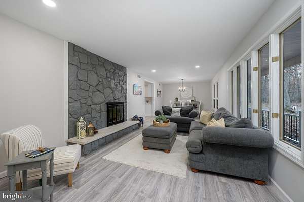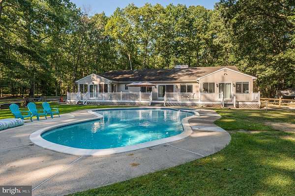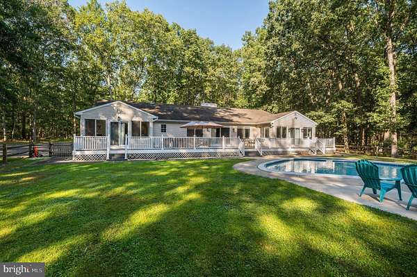 Recently renovated, this ranch-style residence offers nearly 3,000 square feet of effortless, single-level living on a peaceful 5.58-acre wooded lot. Designed for open-concept living, this stunning home features 4 bedrooms and 5 full bathrooms. Continuous flooring and a soft, freshly painted color palette create a cohesive and relaxed atmosphere throughout. Three bedrooms and three bathrooms are situated on one side of the home. At its center, two wood-burning fireplaces bring warmth and charm to the living, dining and family rooms. The custom kitchen showcases white cabinetry, quartz countertops, stainless steel appliances and an oversized island-perfect for everyday living or entertaining during the holidays. A wall of windows overlooks the quiet, fenced backyard, flooding the interior with natural light and connecting the indoors to the outdoors. Off the kitchen, a full bath and a dedicated laundry room with additional cabinetry and countertop space provide flexibility-it can easily double as a butler's pantry while hosting. Continue on to the fourth bedroom, which includes a walk-in closet, full en-suite bath, and a spacious sitting area with sliders opening to the deck and backyard views.The private backyard is designed for relaxation and recreation, featuring a refurbished Gunite in-ground pool, spa & new equipment, a composite deck extending the length of the home and ample grassy space for children and pets to play. A spacious two-car garage with with two additional sheds offer abundant storage options. Located in a desirable neighborhood with an excellent school system. Schedule your private tour today!