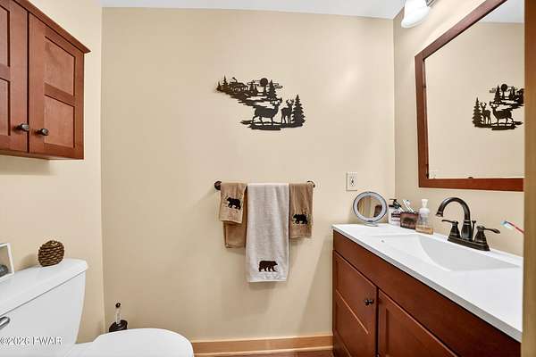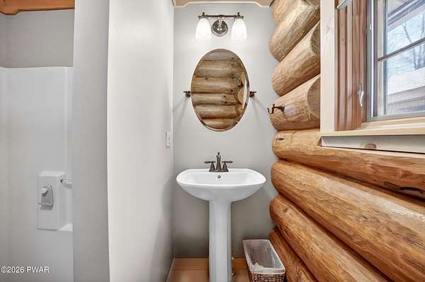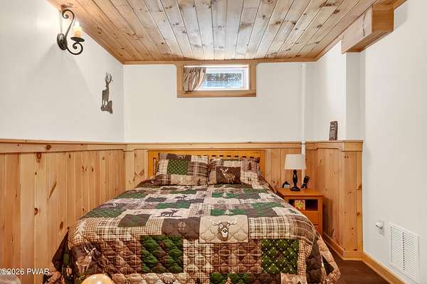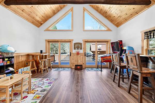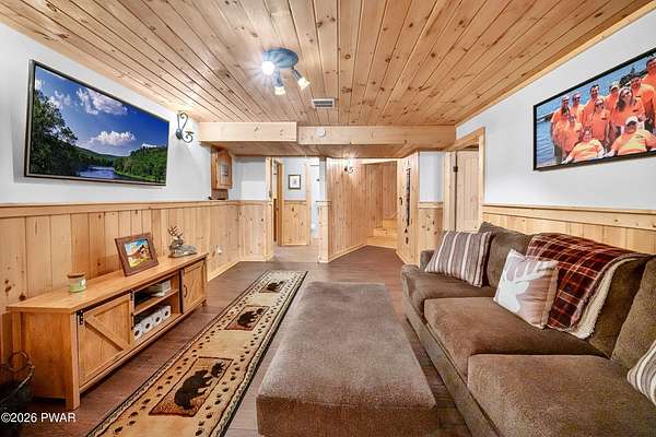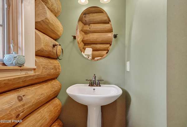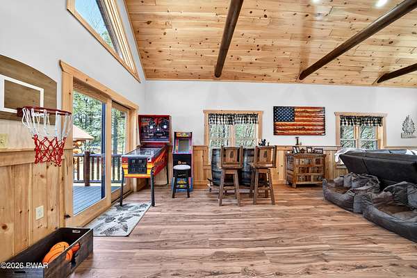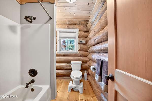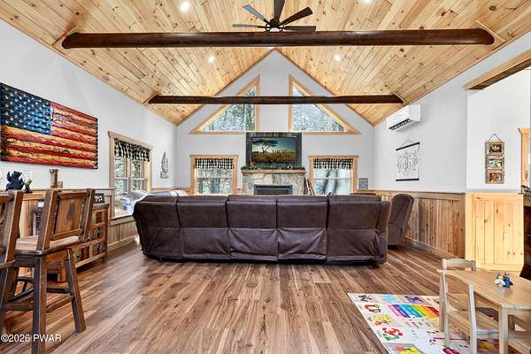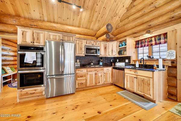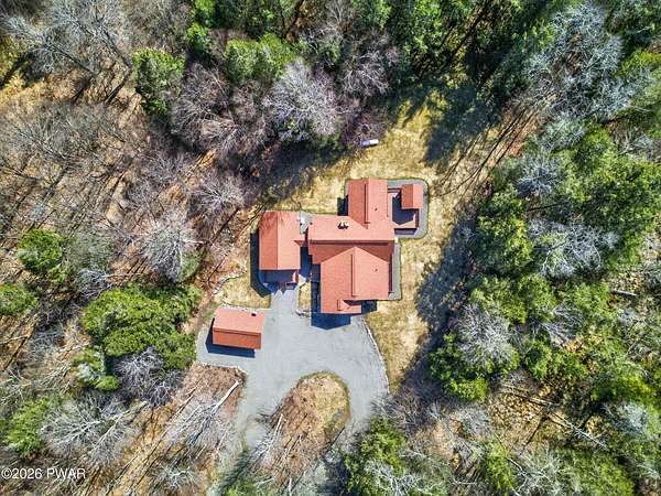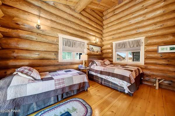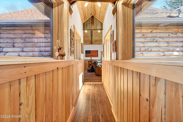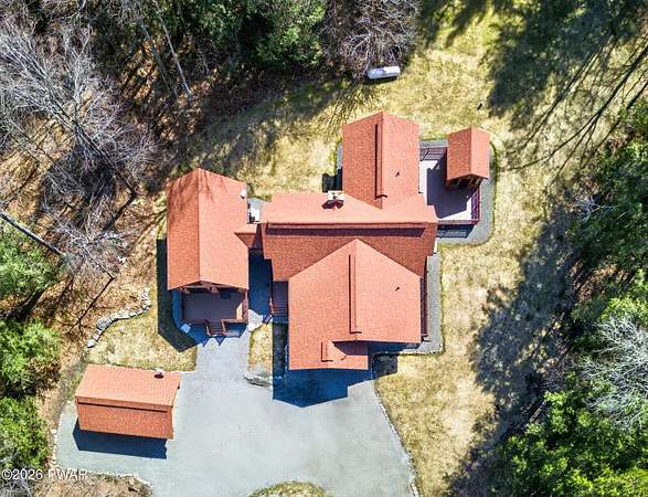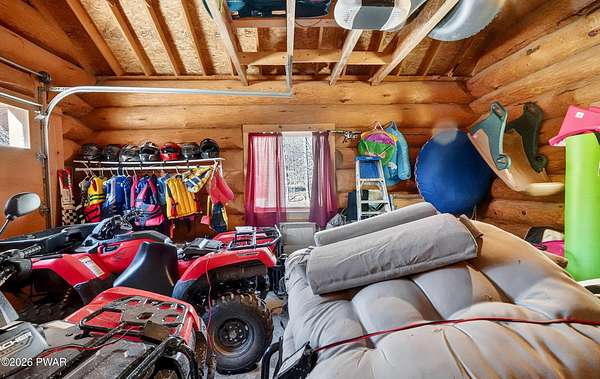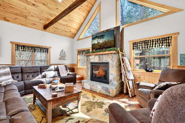 True Log Home on 5.35 Acres with Boat Slip on Motorboating Lake.Welcome to one of the Poconos' best-kept secrets! Tucked at the end of a quiet cul-de-sac inside the gated community of The Woods at Duck Harbor, this stunning true log home delivers authentic mountain living that's nearly impossible to find: raw, beautiful, and completely private.Rich natural log construction, warm softwood pine plank floors, and hand-selected stone accents set the tone throughout. The heart of the home is a spectacular open kitchen and dining room anchored by a soaring stone fireplace. The newly added living room extension impresses with its own stone-faced fireplace, flooding the space with warmth and light. The main level hosts the primary suite, a private log guest bedroom, and a full bath, while the lower level features a family room, three additional bedrooms, a full bath, and laundry room.Outside, nearly 1,000 square feet of deck space wraps the home for entertaining or simply breathing in the trees. A screened-in porch extends the seasons, and a detached log garage adds function and character. The 5.35-acre parcel backs to 120 acres of community green belt, which borders 3,000 acres of Pennsylvania state land, giving you the rare feeling of owning the forest behind you.And then there's the water. A deeded boat slip on Duck Harbor Pond is included, a standout motorboating and fishing lake beloved by the community year after year.The Woods at Duck Harbor is gated, welcoming, and fiercely protected by those lucky enough to call it home. Properties here don't surface often, and 23 Highwood Lane is certainly one special property!
