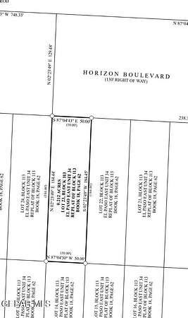Surveyed and cleared with Horizon Blvd Frontage! This nearly quarter acre lot is near the new electric and water lines at Horizon Blvd. New water line installed across the street. Electric lines along the front of property. This is a growing area - with new development happening nearby. Boundaries in photos are approximate based on plat map. Plat map available. Measures Approximately 50 feet by 184 feet.