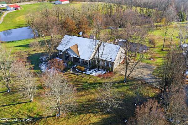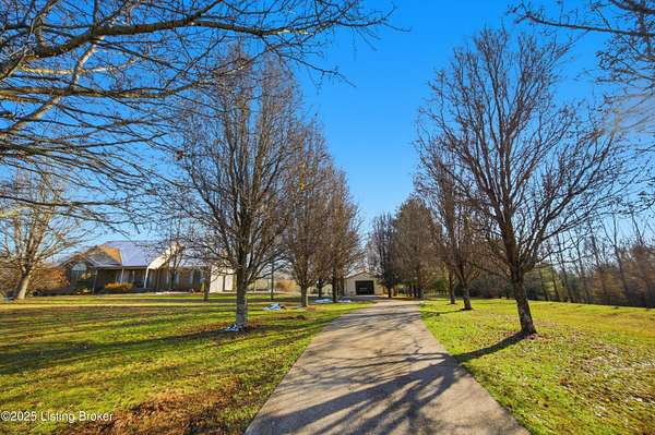 ONE OWNER HOME, First Time Offered Nestled on a Peaceful, Picturesque 7.68 Acres just Minutes from I-64. This 2000 sq ft Walkout Ranch with an Additional 1500 sq ft of Finished Basement Offers Comfort, Privacy and Convenience. Framed by Mature Trees, Creek and Beautiful Year Round Views. In Addition to the 2 Car Attached Garage the 24 x 48 Detached Building, only 3 Years Old with Concrete Floor, Electric & Led Lighting Provides Many Use Options. Inside You'll Love the Light, Bright Atmosphere of the Open Floor Plan featuring Vaulted Great Room, Kitchen with Granite Countertops, Bar Seating. All Appliances & Bay Windowed Dining Area. The Main Level has 3 Bedrooms, including a Spacious Primary Bedroom offering your own Private Retreat with Access to the Deck and a Full En-Suite Bath showcasing a relaxing Whirlpool Tub, a large Walk-in Shower & Walk-in closet plus 2 secondary Bedrooms Both with Walk-in Closets. The Large Laundry Room has Plenty of Light, Pantry/Storage, & Cabinets w/counter . The Basement includes an Optional 4th Bedroom/Office/Hobby Room/Flex Space, Huge room that the Owners used for their Family Christmas every year, a Full Bathroom and Plenty of Shelving in Separate Storage Rooms. The Deck leads to an Above Ground Pool and Hot Tub that Stays with the Property.