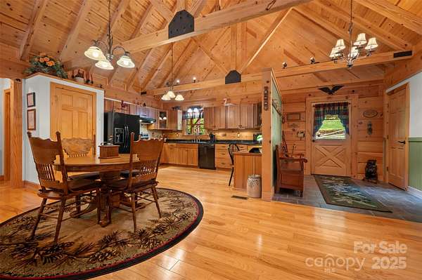 Experience refined mountain living in this meticulously maintained, one-owner, custom-built log estate located just minutes from charming downtown Saluda. Comprised of 2103 square feet, 3 beds and 2.5 baths in a desirable open concept. Privately sited on 3.83 pristine wooded acres-including an additional parcel with a pre-installed well-this residence offers winter mountain views and an exceptional level of craftsmanship. A striking cathedral ceiling with exposed trusses and tongue-and-groove detailing sets an impressive tone upon entry, while a hand-carved stone fireplace anchors the great room with warmth and character. The open-concept layout is enhanced by gorgeous ash hardwood flooring, creating a seamless flow between the main living areas. The spacious primary suite features an elegant ensuite bath, and the open concept kitchen showcases rich granite countertops and beautiful Hickory cabinets. Expansive outdoor living spaces-including a screened porch, covered porch, and a full-length deck-invite year-round enjoyment of the serene natural surroundings. The dry, full basement constructed with Superior Walls offers remarkable versatility with a heated half bath, finished bonus room (no heat), dedicated laundry area, and workshop. Located just 5.5 miles to I-26 and moments from the proposed Saluda Grade Trail, this home provides unparalleled access to outdoor recreation, including nearby Green River Gamelands. Schools flexibility offers access to either Polk or Henderson County schools. Recent updates include log staining (2 years) and freshly updated interior paint. Comes with an emergency portable generator & house is wired for it. A rare combination of privacy, craftsmanship, and convenience-this exquisite mountain retreat is a true Saluda gem. Short Term Rentals allowed!! See MLS #4278065 for the house and 1.56 acres offered at #625,000!