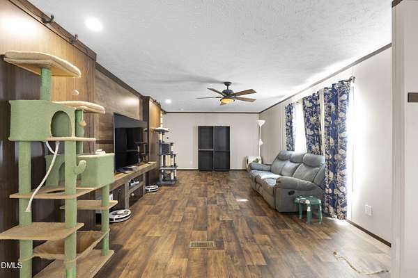 Set on 2 acres with a peaceful water view, this property offers the space, flexibility, and lifestyle you've been looking for. Whether you want room for animals, more privacy, or simply more land to enjoy, this open-concept home checks the boxes. Inside, you'll find 3 bedrooms, 2 full baths, a huge family room, and a spacious kitchen with an island, bar seating, eat-in dining area, and separate formal dining room. The split-bedroom layout gives the primary suite added privacy, complete with double vanities, a soaking tub, walk-in shower, and large walk-in closet. On the opposite side of the home, two additional bedrooms share a well-designed bath with separate double vanities and a private shower/toilet room. There's also a flex space perfect for a home office, playroom, or bonus area. A large laundry/mudroom with exterior access makes everyday living even more functional.