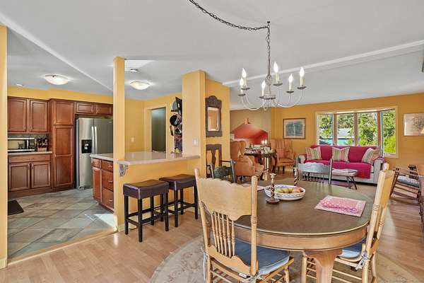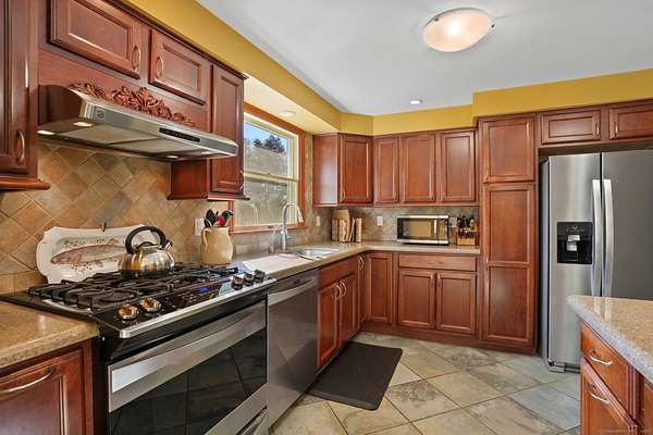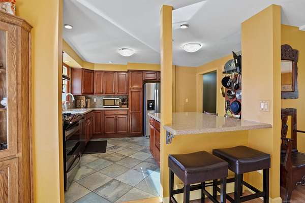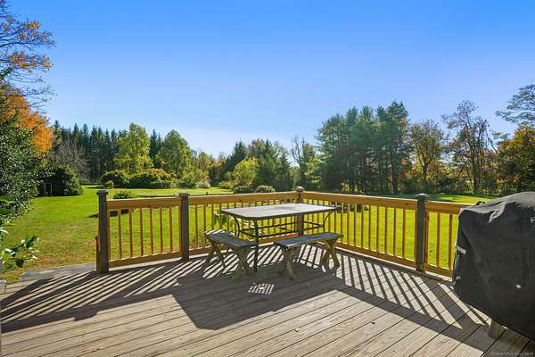 Offers are due by 12pm 11/6/25 - Thank you Welcome home to this wonderfully maintained and versatile Raised Ranch in beautiful Morris. You're immediately greeted by an expansive and non-traditional large and sunny open foyer to get settled as you arrive. Head upstairs to your partially open living room and dining room space with vinyl floors surrounded by windows. The eat-in-kitchen features a gas range with hood, stainless steel appliances, custom cabinets, a large island with multiple sitting areas to entertain or feast and through the dining room are sliders to a back deck to continue the entertaining. Head down the hallway on the main floor to two guest rooms with hallway bathroom and a large primary suite with attached full bath. Continue your tour downstairs to find a huge additional bedroom with double closets, a nicely sized rec room which could be another living room space, a third full bathroom and an unfinished workshop space with washer and dryer which can easily be finished for additional living space. Head outside to the over 3 acre beautifully lush property surrounded by trees and nature. Don't miss the barn and shed in the back of the property and two car detached garage for even more storage or to park the cars. This home and property are truly a tucked away and private oasis with tons of potential to make your own or enjoy as is. Roughly 2 hours from NYC and less than 10 minutes to Bantam Lake and Bantam Market. Your slice of heaven awaits!