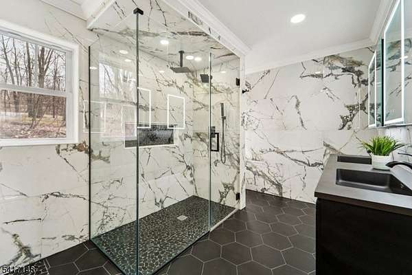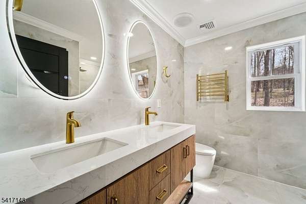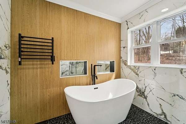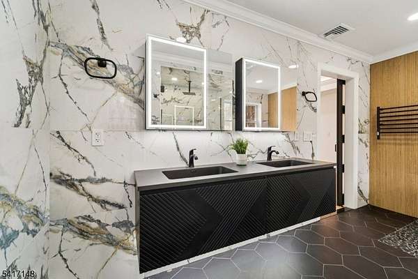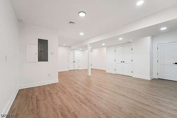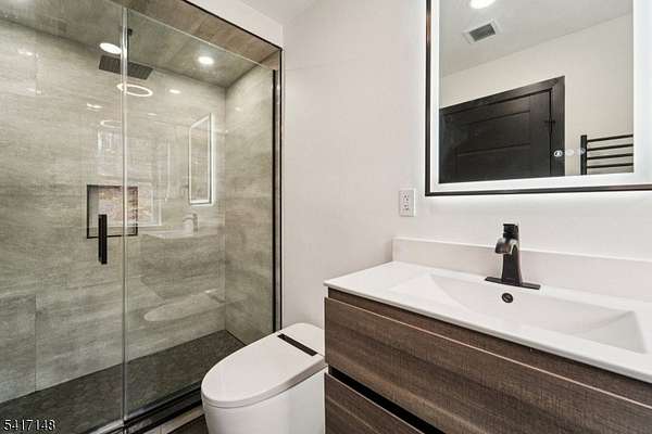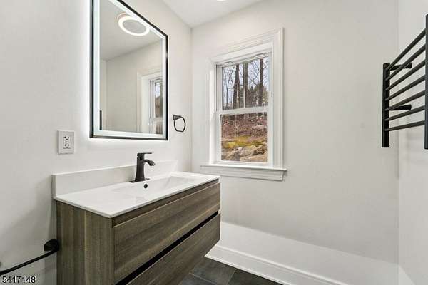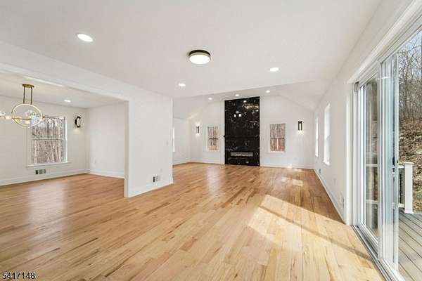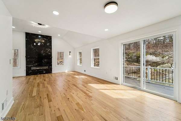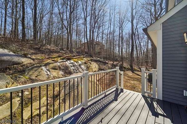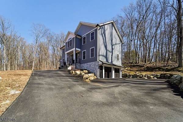 Serene seclusion meets luxury finishes at this spacious, newly built colonial. Private drive with wooded lot provides plenty of privacy. Enter to main hall to find white oak floors and open floor plan. Open and airy kitchen with quartz countertop and backsplash, Thermador appliances, pot filler, drawer microwave, undercabinet and LED lighting make this a chef's dream. Open to formal dining, slider to Trex deck, and spacious living room with electric fireplace. The first floor also boasts half bath, den, and bedroom complete with ensuite full bath. Every bathroom in this home is finished for exceptional comfort to include towel warmer and porcelain tiles. Upstairs, find the primary bedroom complete with spa like ensuite bath, with walk in shower and separate soaking tub. A walk in closet with closet system, and spacious bedroom with tray ceiling complete the primary suite. Down the hall, find 3 more spacious bedrooms as well as hall bathroom with double sink. The finished basement offers extra space as well as entry to 2 car garage, mudroom area, storage, and laundry, with 8 foot ceilings. Other features include a Navien tankless water heater, new well and septic, cable ready. Relax at ease with built in security camera system, as well as perimeter French drains under basement slab. Make this house your dream home with ample possibilities in 3500+ square feet of living space on a private nearly one acre lot, easily accessible to Sparta's main conveniences and commuter routes.
