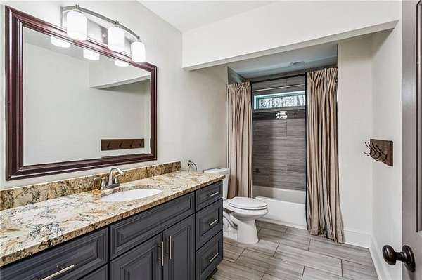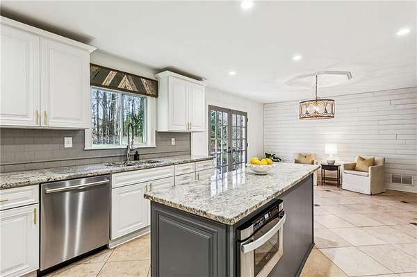 Your private oasis in Marietta awaits. Nestled on over two secluded acres, this beautifully renovated home blends luxury, comfort, and tranquility. The expansive living room showcases soaring cathedral ceilings and a stunning stone fireplace, while the chef's kitchen features granite countertops, a large island, double ovens, a Sub-Zero refrigerator, and upgraded appliances-perfect for everyday living and entertaining. The main level offers three bedrooms and two updated baths, including an oversized primary suite with a spa-like bath and custom walk-in closet. Upstairs, a private loft-style suite with its own bath and laundry provides flexible living space. The finished terrace level includes a living area, bedroom, full bath, and kitchenette-ideal for guests or multi-generational living. Outdoors, enjoy a resort-style saltwater pool, turfed play area, flat sodded front yard, gated entry, added parking pad, and numerous recent upgrades-all within the sought-after West Cobb school district.
