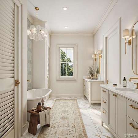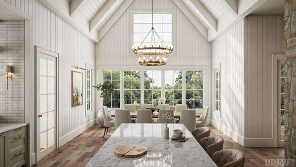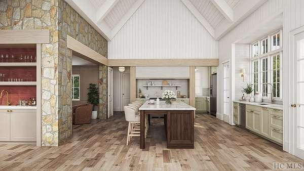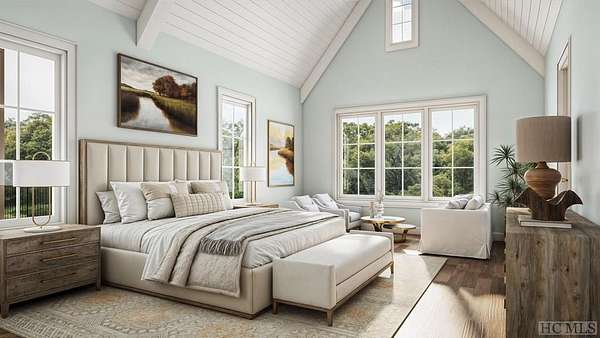 Stunning Mountain Retreat in Old Edwards Club at Highlands Cove now under construction! This exquisite four-bedroom, four-and-a-half-bath residence boasts quality craftsmanship and timeless finishes, offering views of the surrounding mountains. With a prime location, you'll enjoy easy access to both the front gate and club amenities. The home features elegant shiplap ceilings and white oak hardwood floors, setting a warm and inviting tone throughout. The entertaining kitchen is a chef's delight, complete with a gas range, quartzite countertops, and an adjacent wet bar, scullery, and cozy inglenook. Three bedroom suites are conveniently located on one level, while a spacious guest suite above the garage includes a kitchenette and private entry-perfect for visitors. The exceptional outdoor living space features a fireplace, screened porch, and an open-air terrace, ideal for enjoying cool summer evenings. Additional highlights include a guest den/remote office, a two-car garage with a covered walkway, and soaring vaulted ceilings, all contributing to the allure of this mountain sanctuary! This gated community offers 24/7 manned security, underground utilities, and high-speed fiber optic internet. Membership is optional. Members enjoy access to a wealth of amenities: a full-service dining room and bar, an 18-hole golf course, tennis courts, and a heated mineral pool. Explore the GlenCove amenities, featuring an organic community garden, recreational lake, hiking trails, and much more-including a recreation barn with bowling, pool tables, kids arcade, golf simulator lounge, heated lap pool, playground, and fitness & wellness center with spa services. Don't miss this rare opportunity to own a piece of mountain paradise, where luxury meets nature!