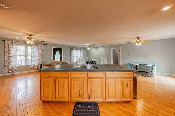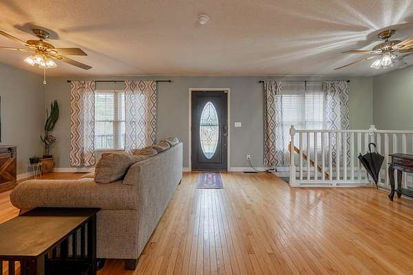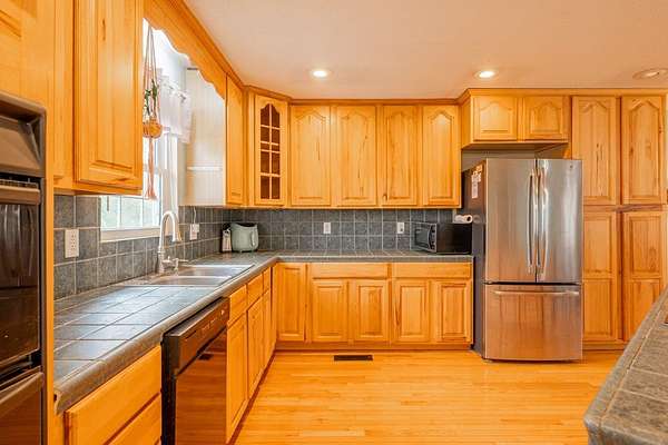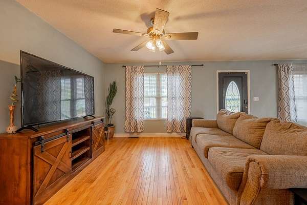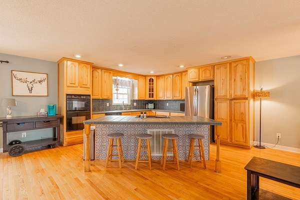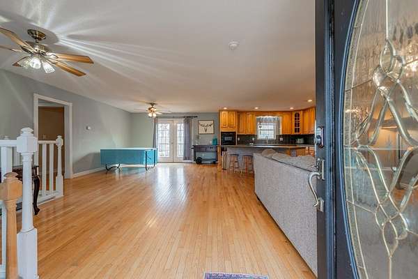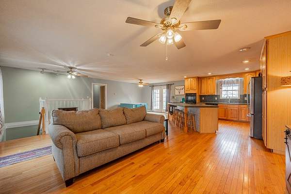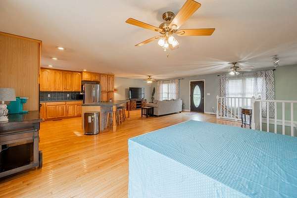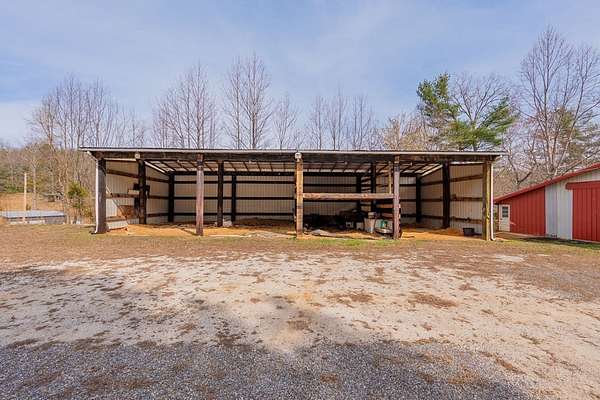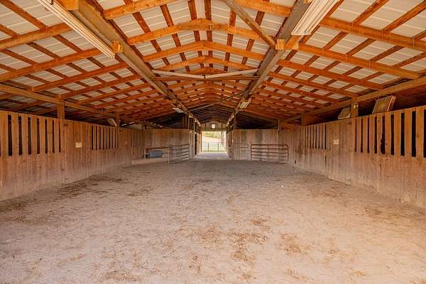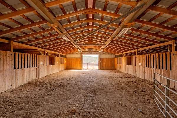 Horse lover's dream! This spacious home offers 4 bedrooms and 3.5 bathrooms with an inviting open-concept layout connecting the living, kitchen, and dining areas-perfect for everyday living and entertaining. The dream kitchen features abundant 42" real wood cabinetry, a large center island, and plenty of workspace. Beautiful hardwood flooring runs throughout the main level, while the mostly finished basement features durable ceramic tile. Two generously sized primary suites-one on each level-provide flexible living arrangements. The home also offers multiple storage rooms and closets for exceptional organization. Step out onto the deck off the dining room and take in the gorgeous views of the pasture, barn, and surrounding countryside. Situated on over 14 acres of mostly fenced pastureland, this property is thoughtfully designed for equestrian living. Enjoy a stocked pond, bold year round creek, a massive 60x80 barn with 13 stalls, tack room, attached dog kennel, bathroom and an indoor riding ring, plus a large 30x60 pole barn ideal for hay storage, equipment, and tractor parking. With sweeping views, ample grazing space, and facilities ready for horses and other farm animals, this exceptional property offers the perfect blend of comfortable living and functional farm amenities.