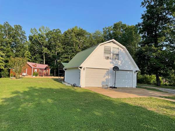 Est $2,010/moPrivate retreat on 21+ acres with 2 homes, 2 car detached garage with upstairs apartment and storm shelter. This one of a kind property offers 21+ peaceful acres just minutes from the scenic Tennessee River! The main house has 3 bedrooms, 2 baths and is a well-maintained manufactured home. The cabin has 1 bedroom and 1 bath with charming wood siding, metal roof and covered porch with seasonal views of the river, perfect for relaxing. For added peace of mind is a storm shelter. Plenty of parking, RV hookup, privacy and outdoor space for recreational or hobby farming. This property offers flexibility or full time living, vacation retreat or income producing investment. Properties like this are rarely available - don't miss your chance!