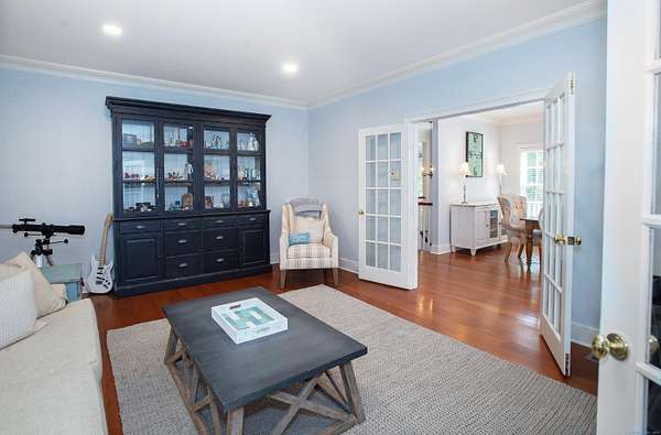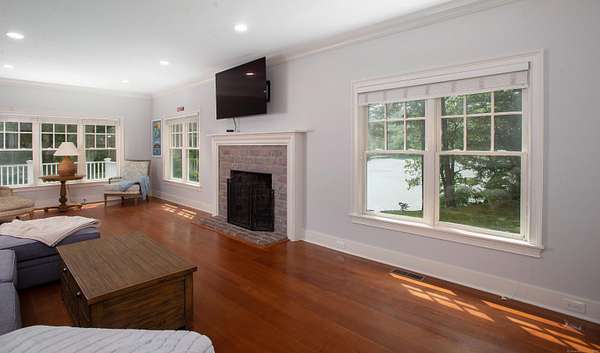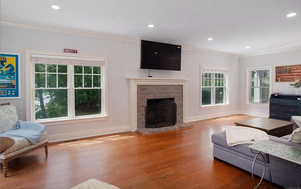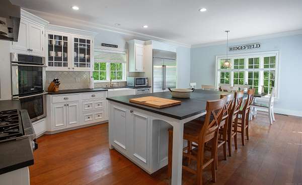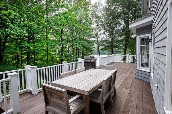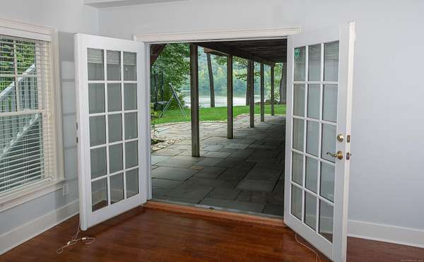 Welcome Home to your own waterfront retreat on Ridgefield's Lake Mamanasco! Perfectly sited on 1.57 acres, this charming Cape-style residence combines comfort, character, and year-round lake living. With soaring 9-foot ceilings, hardwood floors, and an abundance of natural light, the home feels open and inviting from the moment you walk in. The beautifully updated kitchen features soapstone counters, crisp white cabinetry, and professional stainless steel appliances, with a butler's pantry and wine fridge connecting to the dining room. The adjoining spacious family room, featuring a fireplace and French doors that open to the deck, is perfect for everyday living and entertaining. An office, mudroom with built-in desk and laundry, and a welcoming front porch add to the appeal. The upper-level primary suite is a true retreat with a walk-in closet, deck access, and serene water views. Four additional bedrooms and two full bathrooms complete this level. The walkout lower level offers a family room with French doors to the yard, a den, and a full bath. Outside, enjoy expansive decks, patios, and seating areas overlooking the tranquil lakefront--swimming, fishing, or kayaking right from your backyard. Mature trees and plantings provide privacy, while the location offers quick access to Ridgefield's vibrant village and easy commutes to Fairfield, Westchester, and NYC. Note, a new code-compliant, 5-bedroom septic is being installed! Welcome Home!!