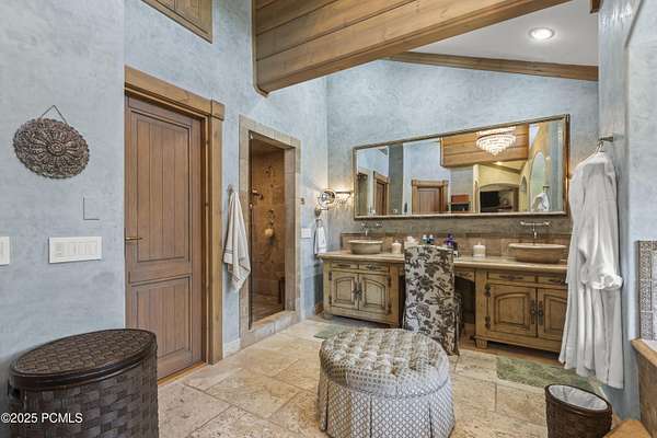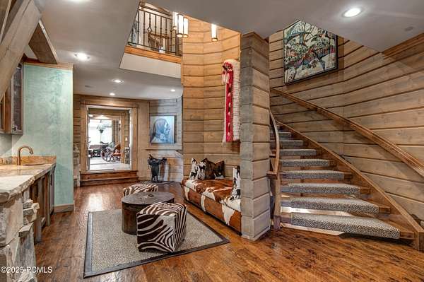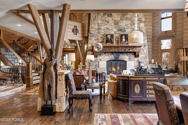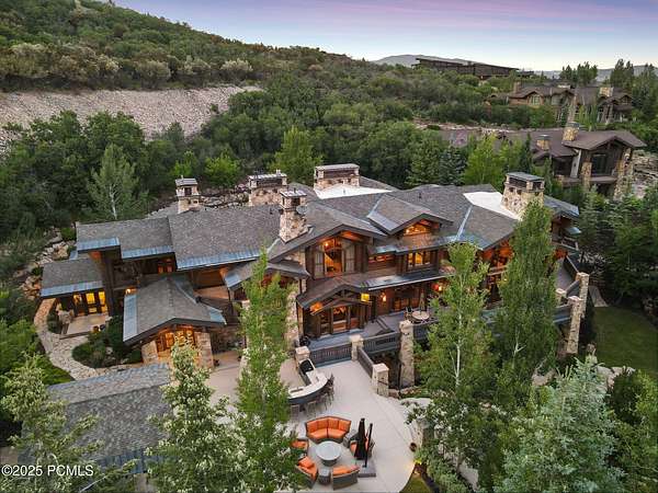 Perched atop Park Meadows in the prestigious enclave of Sandstone Cove, this one-of-a-kind legacy estate offers unmatched privacy, scale, and panoramic views. Situated on 9.8 acres, this nearly 14,000 square foot residence is a MASTERPIECE and HONKA log construction from Finland. The finest of wood/modern log construction is extraordinary insulated healthy ventilation. Timeless alpine elegance with the rugged beauty of its mountain setting. Designed for grand entertaining and family living, the home features 7 spacious bedrooms, 9 bathrooms, a dedicated bunk room, and 6 fireplaces throughout. A massive secondary living space offers flexibility for gatherings, game nights, or a private retreat. The chef's kitchen is a culinary dream with high-end appliances, expansive prep space, and seamless flow into the dining and living areas. Step outside to discover one of the finest outdoor living spaces in all of Park City-complete with multiple patios, a stone fireplace, pizza over and areas designed for dining, lounging, and taking in the sweeping views of the surrounding peaks and valley. A rare opportunity to own an estate of this caliber in the heart of Park City, just minutes to world-class skiing, trails, golf, and Main Street.
