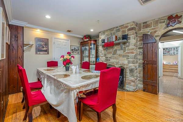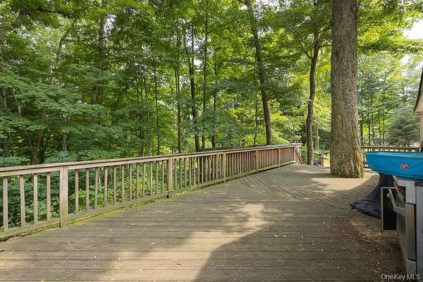 Set on 1.6 acres in the unincorporated Town of Ramapo, with the opportunity to expand to nearly 3 acres by purchasing the adjacent parcel, this lush, tree-lined property offers a spacious single-family home with exceptional privacy and charm, just minutes from town. The home features hardwood floors throughout and three fireplaces, creating warm and inviting living spaces. The kitchen offers ample cabinetry, stainless steel appliances, and a vaulted ceiling that fills the space with natural light. Entertain in the dining room with a stone fireplace and rich wood accents, or relax outdoors on the expansive deck, welcoming front porch, or backyard patio overlooking a peaceful wooded setting. Additional highlights include an oversized driveway and a spacious basement with laundry. A rare opportunity for those seeking space, serenity, and classic character in a desirable location.