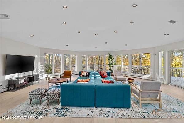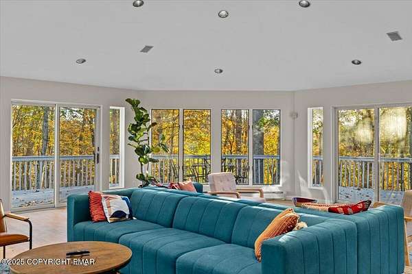 A rare architectural masterpiece in the heart of the Poconos. Welcome to ''The Octagon House'' - a tastefully updated and professionally furnished 4-bedroom, 3.5-bath residence offering an impressive 5,672 sq. ft. of refined living space on 1.83 private acres. From the moment you step inside, soaring light-filled spaces and a seamless flow of open-concept design set this home apart. Walls of windows flood every room with natural light, while sophisticated finishes and designer furnishings elevate every detail. Each room has been thoughtfully curated to tell its own story - blending comfort, character, and style in a way that makes this home truly unforgettable. The property is being sold fully furnished, staged by a professional design team, creating a truly turn-key opportunity. With two expansive decks on opposite sides of the home, outdoor living is just as extraordinary - ideal for entertaining, relaxing, and enjoying the surrounding natural beauty. This one-of-a-kind property also sits in a location that permits short-term rentals, making it a rare investment opportunity as well as a luxurious primary or vacation residence. A statement of modern elegance and architectural artistry, The Octagon House is more than a home - it's an experience.