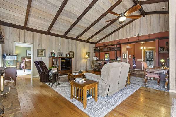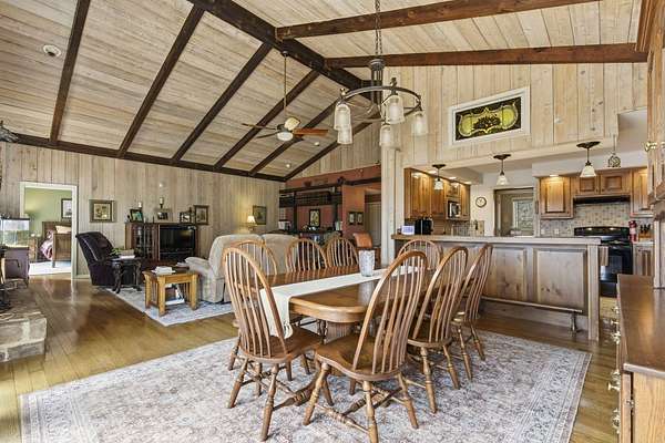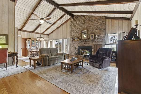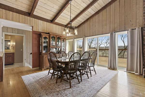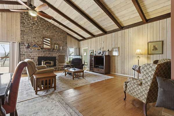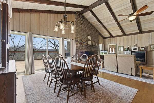 Tucked away on nearly 48 breathtaking acres along the Niangua River, 23 Sweetwater Lane in Buffalo, Missouri offers the ultimate private retreat for those craving space, nature, and waterfront living. This 4 bedroom, 3 bath home is surrounded by mature woods and features direct river frontage, allowing you to step outside and enjoy fishing, floating, or simply taking in the peaceful sights and sounds of the water from the expansive back deck. The home welcomes you with a grand entrance and covered parking beneath the rear deck, along with an attached garage providing convenient access to the upper level. A finished walk out basement adds flexibility and functionality, making the layout ideal for full time living or a potential vacation retreat. Inside, spacious living areas create an inviting atmosphere for gatherings, while the primary bedroom offers comfort and privacy with an updated walk in tiled shower. Recent improvements include a roof approximately five years old, a newer deck, updated flooring with new carpet and luxury vinyl plank in the basement, and a new well pump installed in 2021. Outside, the property truly shines with a 30 x 70 shop complete with heat, air, and electric, an additional kennel or storage building, and an older barn ready for restoration. A beautiful walnut tree grove enhances the natural setting. With no restrictions, this property offers endless possibilities as a secluded river retreat, recreational getaway, or investment opportunity, all just minutes from Buffalo and within easy reach of Springfield.