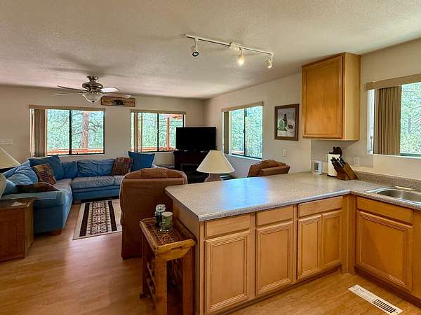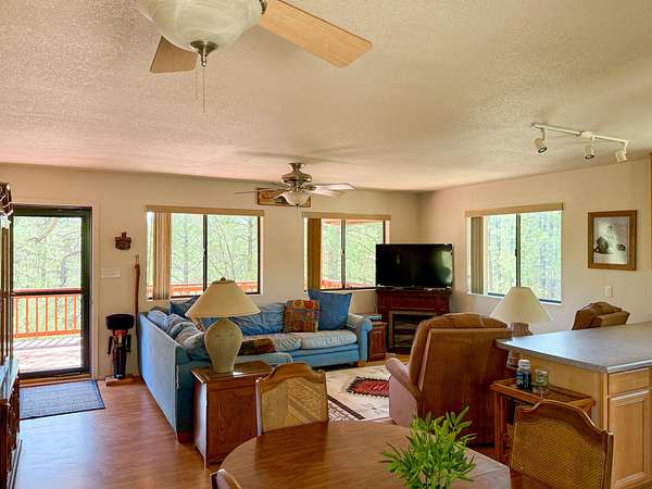 With four possible bedrooms and four garage spaces, this is the perfect place for a group retreat. A roomy covered deck in the front has room for everyone to sit and enjoy the beauty of the woods and the wildlife. The house is private and secluded, up a long driveway past a large meadow and into the tall pine forest. The meadow has an RV pad with views of the colorful cliffs to the west, and the distant Zuni mountains to the east. Deer, elk, turkeys and foxes are all regular visitors. Minutes away from Cibola National Forest, Ramah Lake, and several great hiking and equestrian trails to explore. Bring your telescope, this is Dark Sky country and the stars are simply astonishing. HOA is only $230 /yr and includes road maintenance. Clean air, crisp nights and a friendly community await.