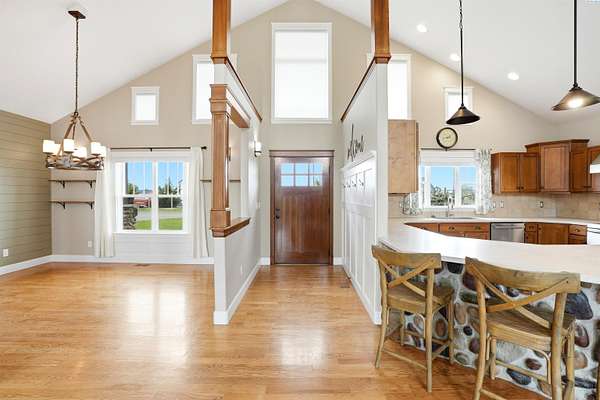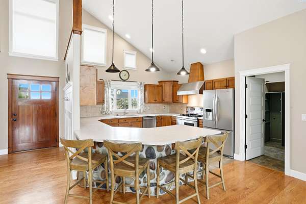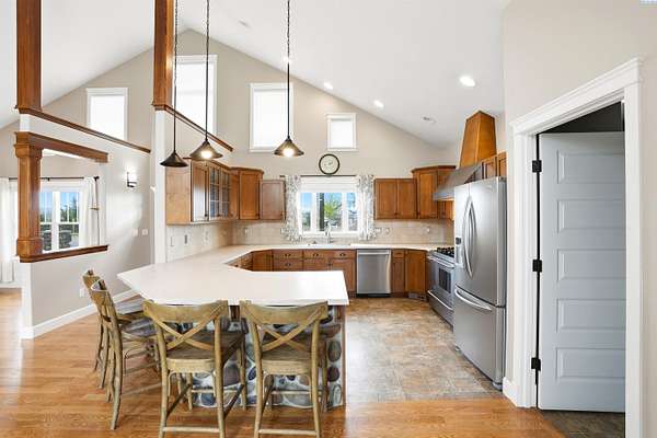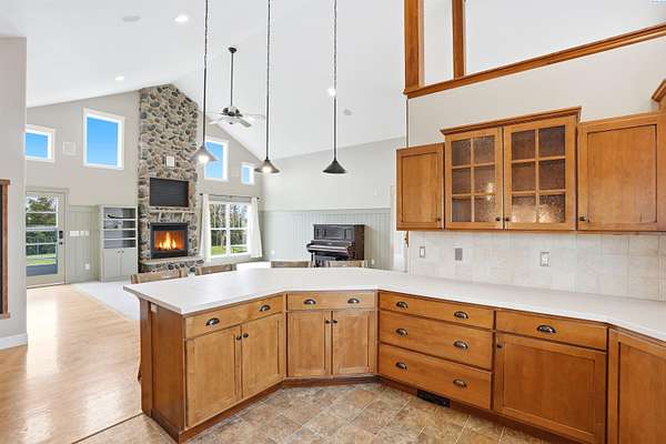 Beautifully maintained custom home on Albro Road in Sunnyside offering the space, layout, and amenities buyers are looking for. This inviting property features a thoughtful split bedroom design, generous living areas, and quality finishes throughout. Inside, you’ll find a bright and open floor plan with vaulted ceilings, large windows, and a stunning floor-to-ceiling stone fireplace that anchors the main living area. The kitchen offers abundant cabinetry, excellent workspace, and a large island with seating, flowing easily into the dining and living spaces for comfortable everyday living and entertaining. The primary suite is privately situated and includes a spacious layout, a walk-in closet, dual vanities, a soaking tub, and a separate shower. The additional rooms are well sized, and the home also offers ample storage, a functional laundry area, and an oversized attached garage. Outside, the property continues to impress with beautifully maintained grounds, an expansive lawn, a large patio for outdoor enjoyment, and a substantial detached shop that offers excellent flexibility for hobbies, storage, equipment, or workspace needs. The setting offers a great combination of comfort, privacy, and usable space. A rare opportunity to own a well kept home with a shop, attractive outdoor living, and room to spread out in a desirable Sunnyside setting.