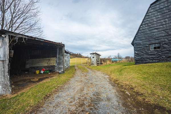Right-of-Way: A 15-foot shared right-of-way runs along the western boundary near the barns and provides access to the upper portion of the property. Shared with the neighboring property at 319 Barnes Lane.