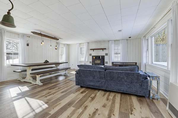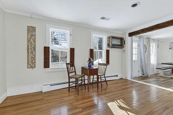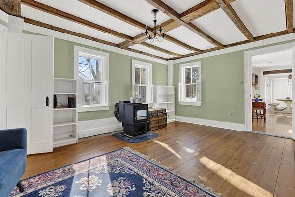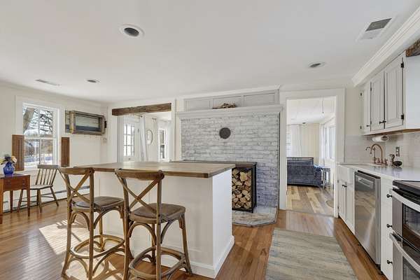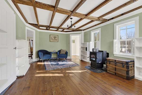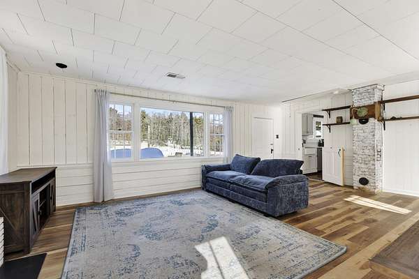 If you've ever dreamed of owning a piece of Kennebunkport's history, this is your chance! The home sits in a peaceful country setting on approximately 3.0 private acres just minutes from Goose Rocks Beach and Dock Square, this 225-year-old Kennebunkport Cape offers timeless character paired with thoughtful modern updates. The single-level layout features a renovated kitchen includes quartz countertops, farmhouse sink, and new appliances and opens to a large great room highlighted by original beams and a new energy-efficient fireplace insert. There's also another living/dining room with a pellet stove. The primary bedroom offers a large walk in closet with built-ins a well as an adjoining office/ nursery. Recent improvements include new flooring, a custom kitchen island and updated heating systems including a pellet stove and Rinnai heaters. Outdoors, enjoy a fully fenced backyard, covered porch with metal roof, outdoor shower, fire pit, dining area, and extensive gardens with mature blueberry bushes and young fruit trees. A 2-car garage with loft storage completes this special offeringaEUR"beautifully livable today with room to personalize tomorrow