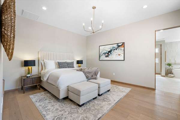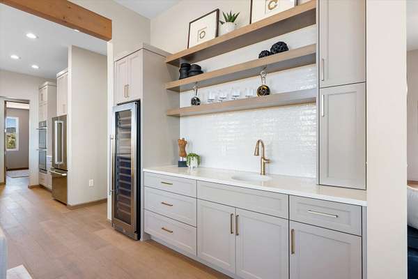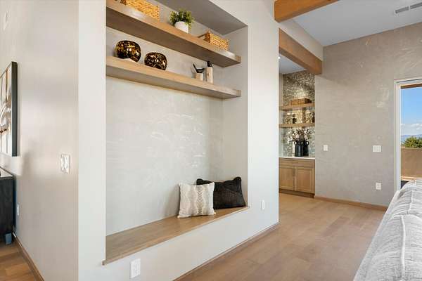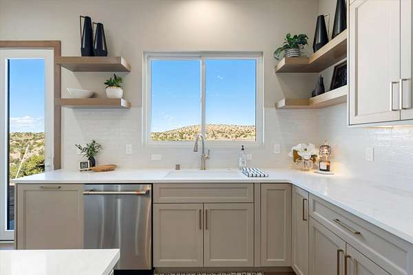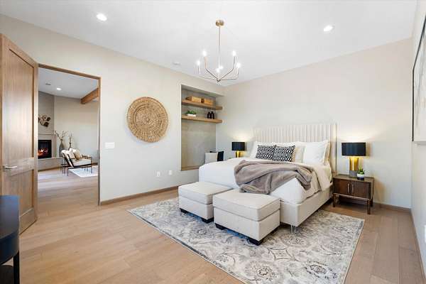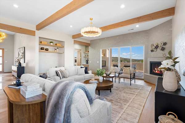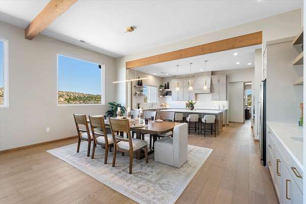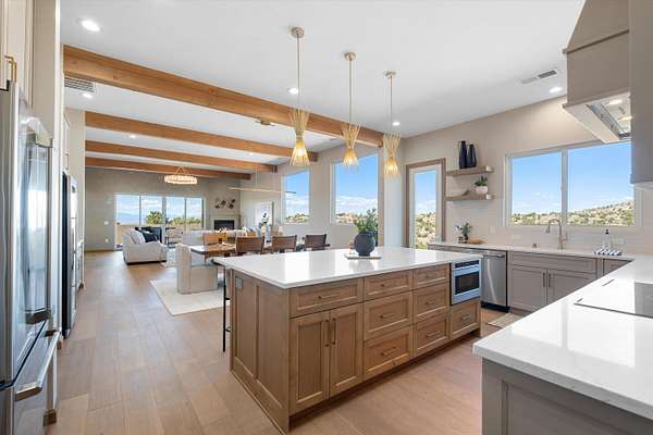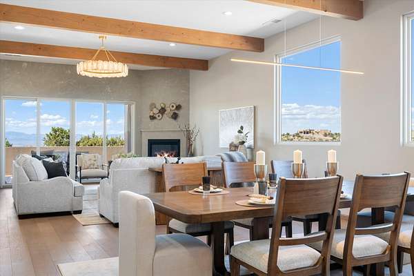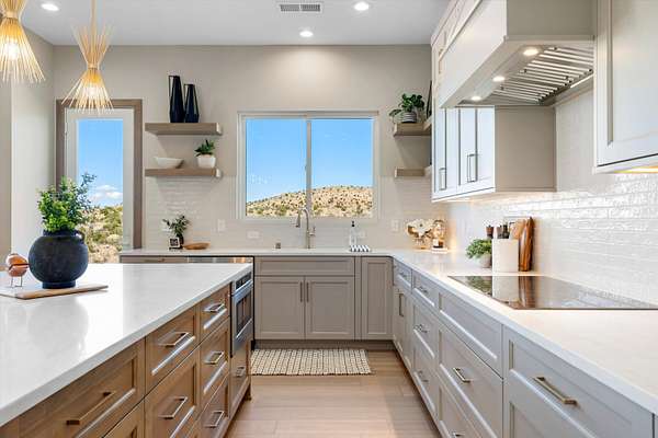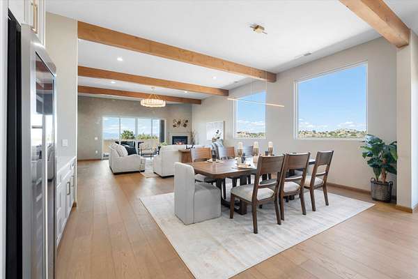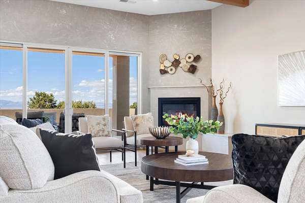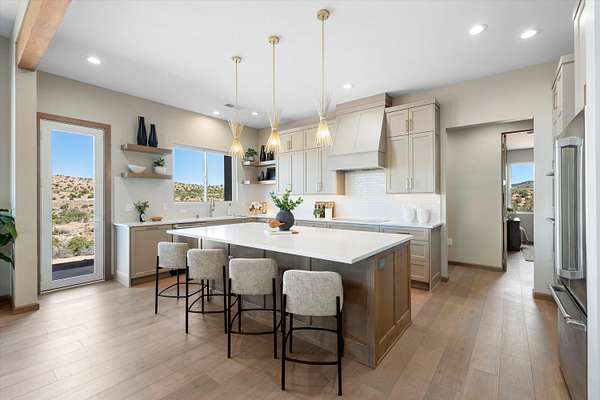 Located in the gated Diamond Tail community, this custom home offers privacy and breathtaking views on 1.6 acres. Designed with understated elegance, it features a neutral palette and timeless finishes throughout. The open-concept layout includes 4 bdrms and 2.5 bths. The luxurious primary suite features a spa-like bathroom with a soaking tub and a generous walk-in closet. The kitchen is a chef's dream, showcasing Cafe appliances, including a 5-burner induction cooktop, double convection ovens, 2 dishwashers, 2 refrigerators, and a dual-zone wine cooler. A large butler's pantry provides additional prep and storage. Relax in the main living area with a custom fireplace or step outside to the patio to enjoy a second fireplace and serene surroundings.