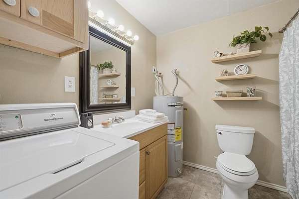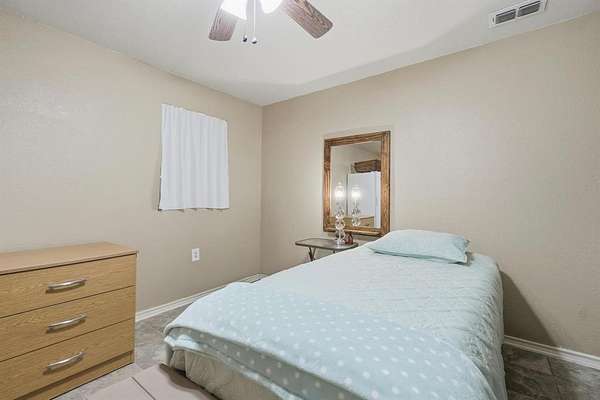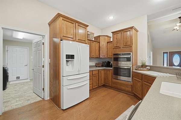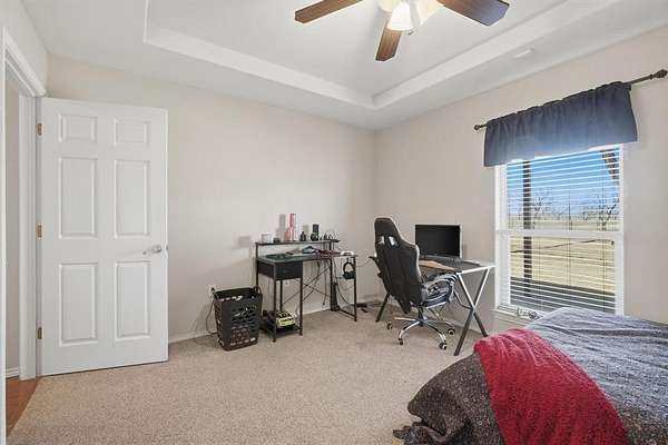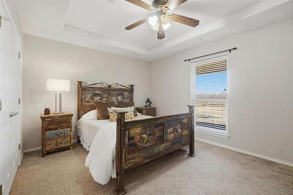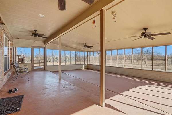 This versatile property offers the best of country life, whether you're dreaming of raising horses, chickens, or just enjoying a spacious, tranquil living space in the heart of nature. Step inside to find a spacious living area where vaulted ceilings and a wood-burning fireplace impart a sense of warmth and openness. The open-concept design effortlessly connects the living room to a designated dining area and a bar area ideal for informal dining. The kitchen boasts a sleek, open flow layout complete with a pantry, built-in oven, microwave, and a cooktop. The expansive kitchen bar easily accommodates six bar stools, making it a perfect hub for entertaining. The primary suite, a true retreat, features an attached flex room that can serve as an office or additional closet space. The en-suite bathroom is a sanctuary featuring a smart shower with dual rain heads and custom dual sinks. The utility room offers added convenience with pantry storage, a sink, and additional cabinets, elevating everyday living. Outdoor living is maximized with a vast 23x33 ft. back porch designed for leisure and entertaining. There is also a guest house providing a private one-bedroom, one-bath retreat with a well-appointed kitchen and living room.