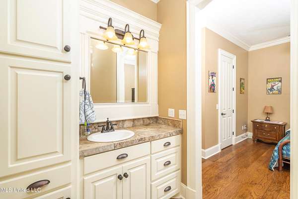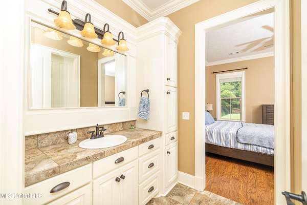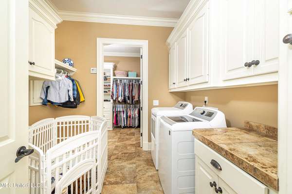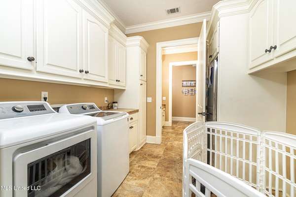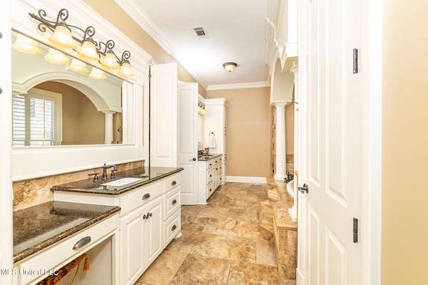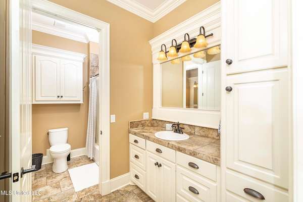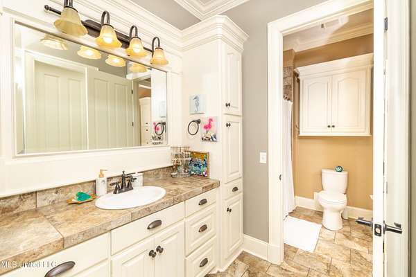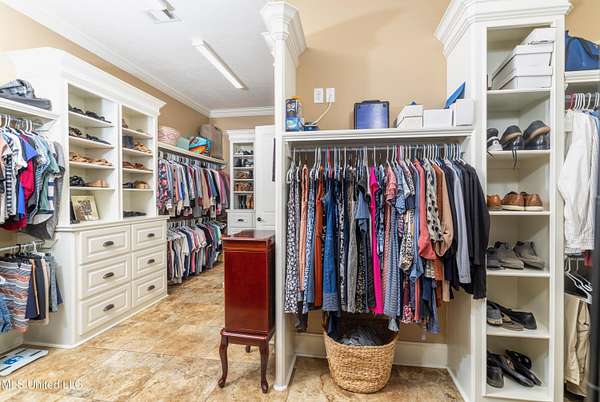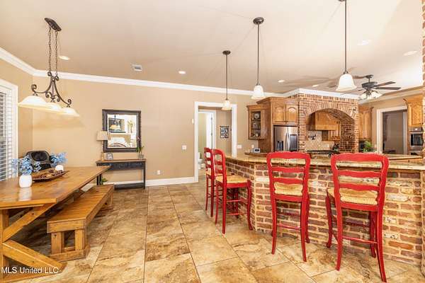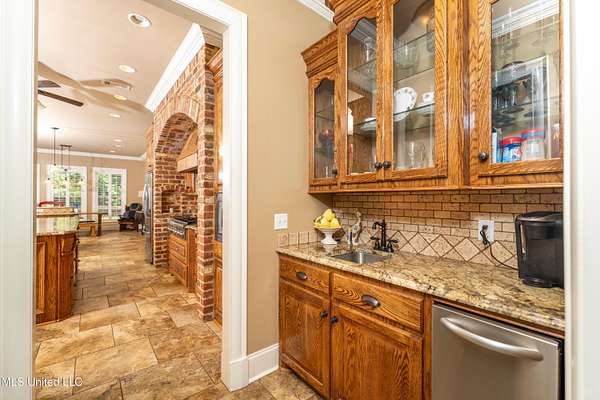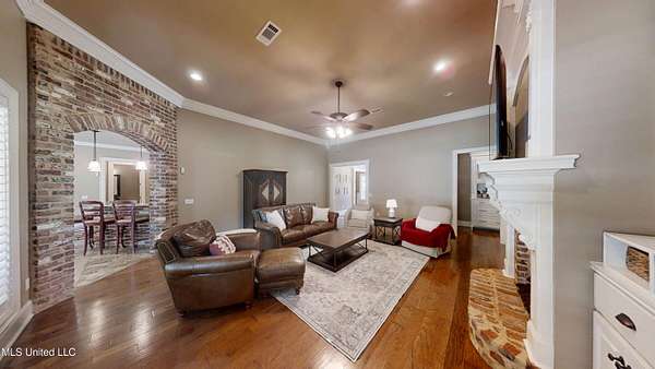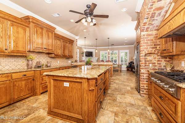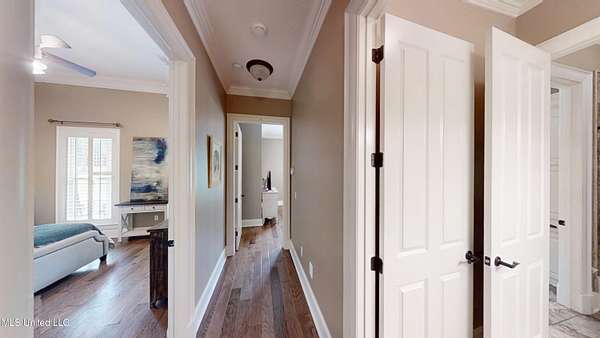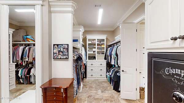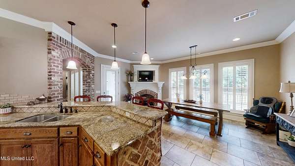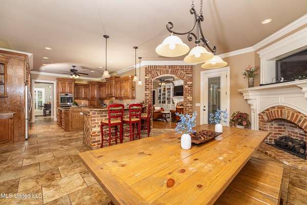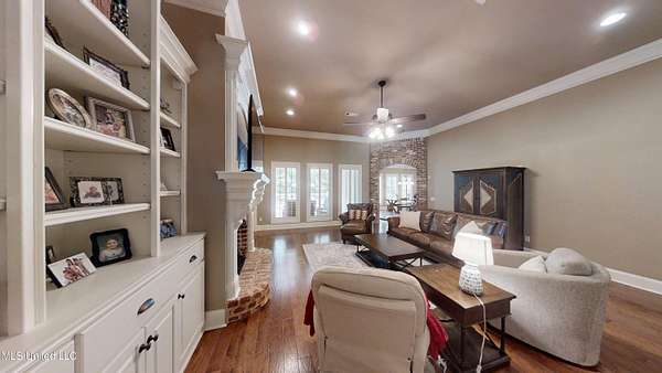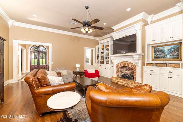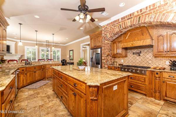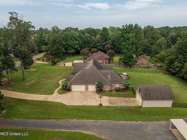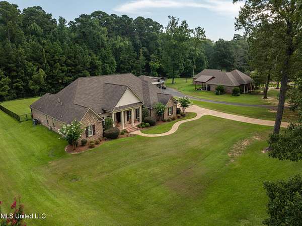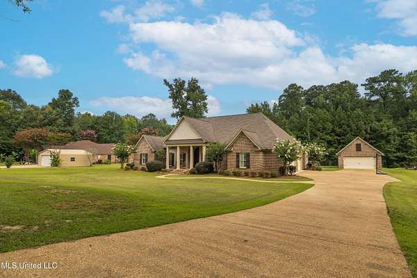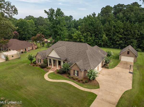 Sophisticated & Custom Built, 1 Story Home on 2.68 Acres in East Brandon! The Treasure Trove of Extras are Almost Too Many to Name! The Incredible Kitchen is Perfection! 3 Attached Garage Spaces! Additional, Detached Garage For a Boat or Possibly 2 More Cars! Central Vac System! Tons of Indoor, Garage & Floored, Attic Storage! Covered Porch & Patio! Large, Fenced Back Yard! Unfenced, Back Half of Property Is Wooded! Free Safe! Almost Every Space is Oversized! The Finishes are Virtually Unmatched! 2 Tankless Water Heaters! No Carpet! 3D Virtual Tour Available - Be sure to click the virtual tour link. This stately 5 bedroom, 3.5 bathroom split plan home with 5 garage spaces is conveniently located between the East Brandon I-20 exit & Downtown Brandon, all near Shiloh Park. The large front yard and huge covered porch welcome guests into the foyer of this masterfully constructed home. Upon entering the home, the attention to detail is evident, with high ceilings, custom tile entry, wood floors, beautiful crown moulding, wood shutters and trim work accentuating every corner of the home. The large foyer is open to the grand living room directly ahead and the elegant dining room to the right. The dining room reveals a space surrounded by wainscoting and wood shutters, providing private access to the kitchen via the wet bar w/display cabinetry, ice maker and walk-in pantry. The exquisite kitchen is larger than life, featuring a huge kitchen island, granite counters, custom oak cabinetry w/over & under lighting, storage for days, Bosch double oven, built-in microwave and Thermador 6 burner cooktop w/pull out spice drawers on either side and a pot filler. The breakfast bar and key drop/organization nook transition the room to a large keeping/dining area, set apart by a ventless gas fireplace w/hearth, mantel and entertainment center. This space overlooks the backyard and provides direct access to the covered patio. A brick archway, matching the brick at the breakfast bar, provides the transition into the living room. Also overlooking the covered patio, the living room boasts an enormous ventless gas fireplace w/hearth and mantel w/custom shelving and storage on either side. The primary suite is another showpiece, off the kitchen, on a long hall connecting it to the garage. Outside of the tray ceiling, the real charm is in its impressive bathroom and closet spaces. Separate vanities, step-up soaking tub, separate shower w/seat and additional handheld spray head, makeup vanity and more beautiful trim work stand out. The bathroom creates the beginning of a U-shaped space, leading through a wildly large bedroom sized closet, complete w/5ft tall safe, built-ins and dressing mirror, and connecting to the laundry room & built-in office on the same hall off the kitchen. Off a private hall on the opposite side of the home, to the left of the living room fireplace, are 2 bedrooms and a guest accessible Jack and Jill bathroom. On the other side of the fireplace is another private hall w/2 more bedrooms connected by Jack and Jill bathrooms. Each secondary bedroom is generously sized and has its own vanity and walk-in closet. Other highlights of the spaces off the kitchen hall are a guest half bath, walk-in closet for the built-in office and the laundry room, which provides a counter, as well as space for an additional fridge and deep freeze. The real feeling of being out of the city w/one's own private oasis starts with the covered patio w/tongue and groove ceiling, expansive deck, fenced backyard and a view of your own personal woods. The backyard privately connects to the detached garage that could be used for a boat, cars, ATV, workshop, storage, etc. If that's not enough, the 3 car attached garage provides ample room as well for all of your needs and easy access to the extensively floored attic. Call today for your private tour.