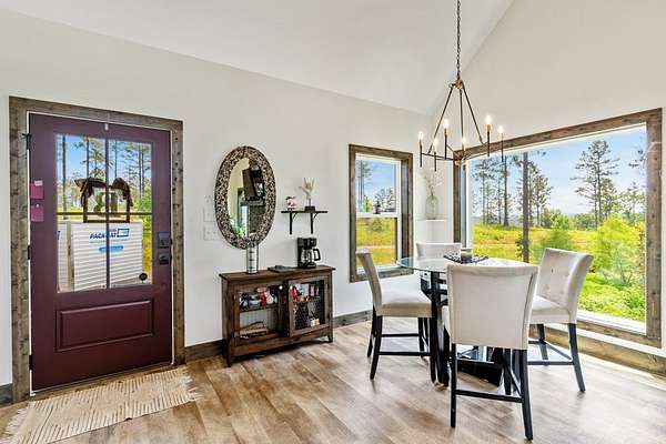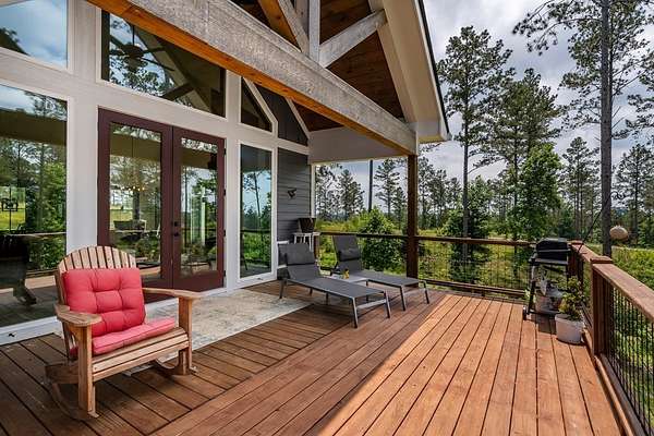 Modern meets rustic in the spacious open concept floor plan. One level living welcomes you with soaring ceilings, walls of glass, and abundant natural light that frames beautiful views. The long range views can be enjoyed from the oversized deck or through out this beautiful home to the stone firepit in your back yard. Cozy up to your stacked stone fireplace on those cold North Georgia Mountain nights. Gather around the large center island in this beautiful kitchen with stone counter tops, gas range, true vent hood and farm sink. Enjoy meals with family and friends in the dining area with large windows to take in nature's beauty. Spacious owner's suite has tiled walk-in shower, soaking tub and walk-in closet. Large guest bedroom could also be office space, craft or exercise room. Nice laundry room with wood folding table, cabinets and closet. Stand up crawl space could be used for extra storage. Fenced in side yard is a great area for kids to play or your furry friends. This home is located in sought after gated community with 2 story clubhouse, access to Mountain Town Creek and paved roads. Come visit for a moment, stay for a lifetime! Full-time, part-time or short-term rental move in ready.