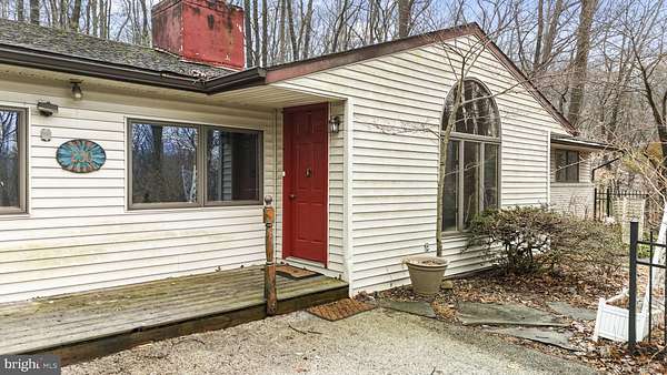 Welcome to 230 Jug Hollow Road! Nestled in a peaceful, wooded setting, this spacious 4-bedroom, 2.5-bath ranch oers a fantastic opportunity to create your dream home. The flexible floor plan features a large living room with hardwood floors, a fireplace with wood burning stove insert, handcrafted built in bookcase, skylight, and a bright foyer highlighted by a dramatic arched window. There is an additional family room, also with fireplace, a cedar lined closet, and a secret closet with access to the attic. The kitchen and dining area provide plenty of space to redesign and customize to your taste. The bedroom wing includes a master suite with a private powder room and access to a shared bathroom. There are three additional bedrooms, one of which has private access to the shared bathroom, and a full hall bath. Additional features include a dedicated laundry room, pantry space, arts and crafts room or studio with skylight, and a large unfinished basement oering abundant storage and potential. Outside, enjoy the private, 2.4 acre wooded lot! In front of the house is a slated patio for enjoying the woods and the garden, planted by the owner. In spring this area is covered with gorgeous azalea, mountain laurel, wisteria, and rhododendron blooms. The highlight of the front garden is the beautiful blooming magnolia tree. Near the front door is a Japanese Maple tree. Rhododendron bushes also grace the back of the house, visible through the French doors in the dining room. The side of the house has a second patio area, and a one room play house, wired for electricity, built by the owner's father. Wildlife visitors are frequent, from deer, squirrels, and chipmunks, to many varieties of birds which change with the seasons. The owners and builders of the house were artists with a unique vision and an appreciation for the beauty and serenity of their homes' location. 230 Jug Hollow was one of the very first homes built in this now very desirable area. With great bones, generous room sizes, and endless renovation potential, this home is ready for your vision and updates to make it truly your own.