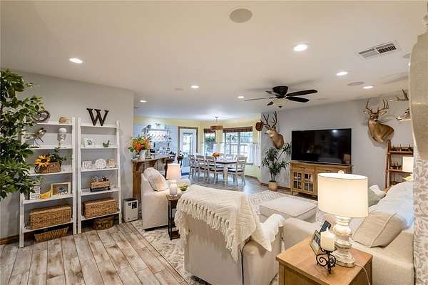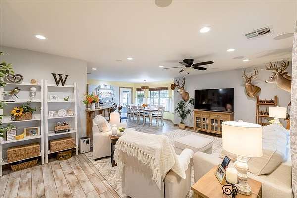 Cozy Lake Cottage Retreat on 2.5 Acres - Your Peaceful Escape Near Lake Eufaula! Tucked away in a quiet, wooded setting just minutes from lake access and the boat ramp, this charming 2-bedroom, 2-bath cottage-style home is the perfect place to unwind, recharge, and enjoy life at a slower pace. Step inside to a cozy, well-loved home that blends rustic charm with modern comfort-ideal for a weekend getaway or year-round living. Outside, enjoy the peaceful sounds of nature from your covered back patio-perfect for sipping morning coffee, grilling with friends, or relaxing around the firepit under the stars. This property is made for outdoor living, with 2.5 acres of open space, a large garden area with raised beds for your favorite flowers or veggies, and plenty of room to roam. Bring your lake gear-there's an RV carport, full RV hookup, a separate shop, and a storage building to hold all your toys. Whether you're casting a line in one of the area's great fishing spots or just soaking in the cottage comfort of your own backyard, this is the kind of place that feels like home the moment you arrive.